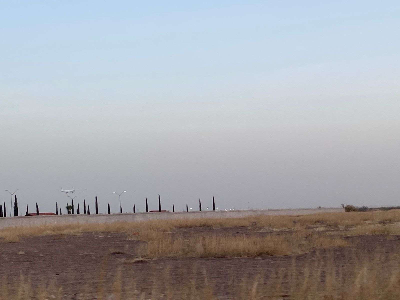 Chihuahua.– La ciudad amaneció nuevamente bajo una densa capa de contaminación que se extendió desde la zona del aeropuerto y áreas aledañas, además de sectores del norte y centro de la ciudad.