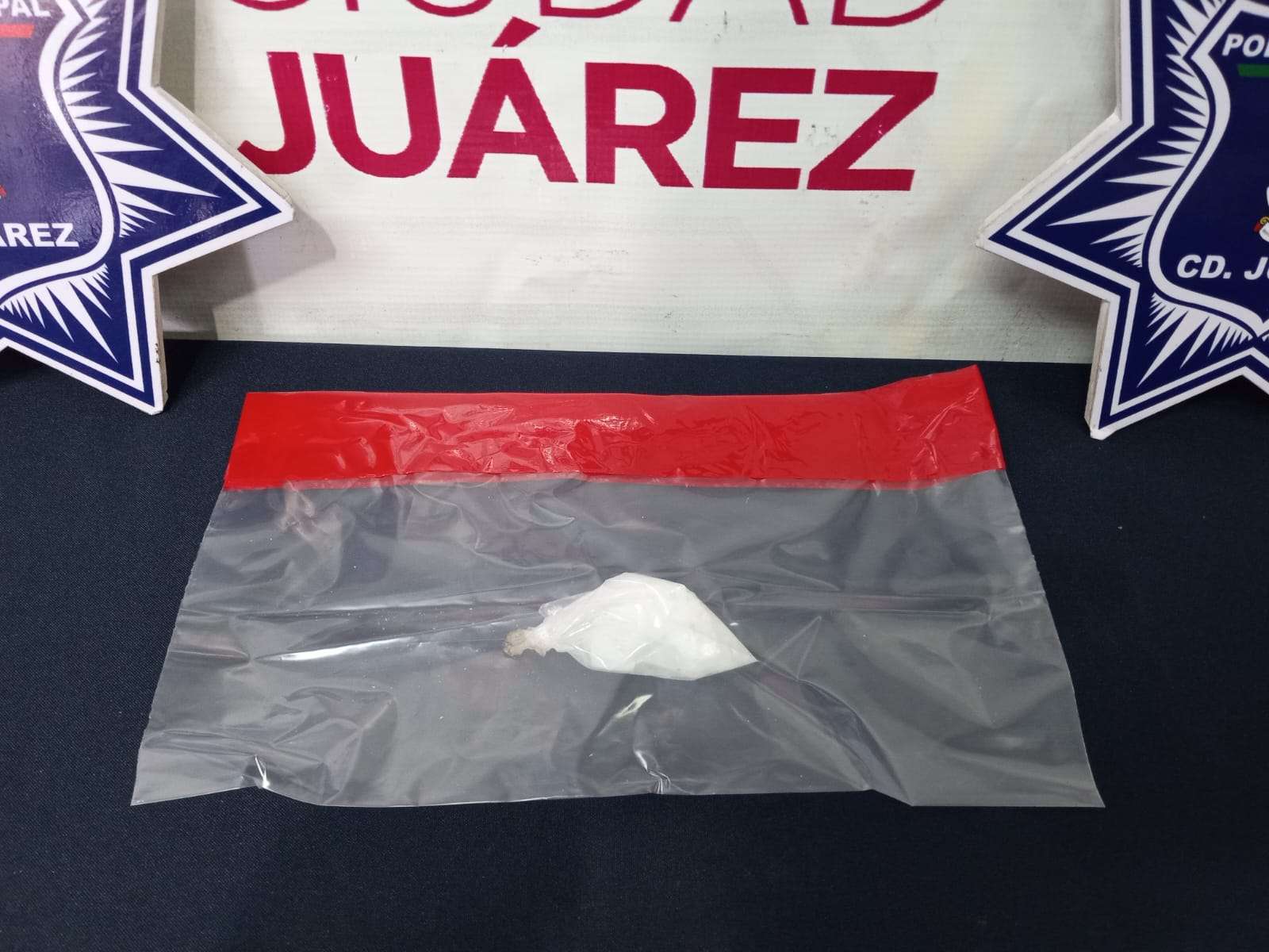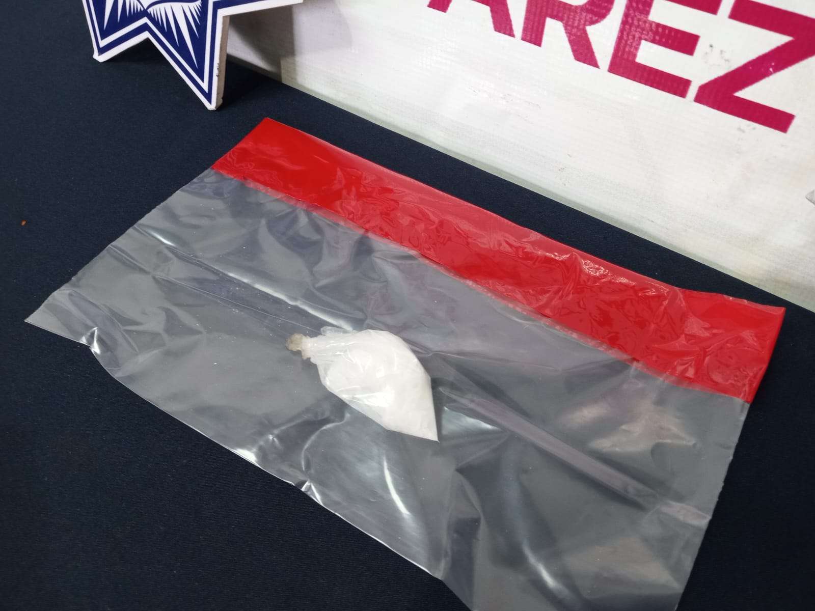 Motivo por el cual fue abordado para informarle que sería presentado ante un Juez Cívico, pero al realizarle una inspección preventiva se le localizó entre sus pertenencias un envoltorio de plástico con cristal, con un peso aproximado a los 14 gramos, razón por la cual fue detenido quien dijo llamarse Ángel Gabriel L. H. de 23 años.