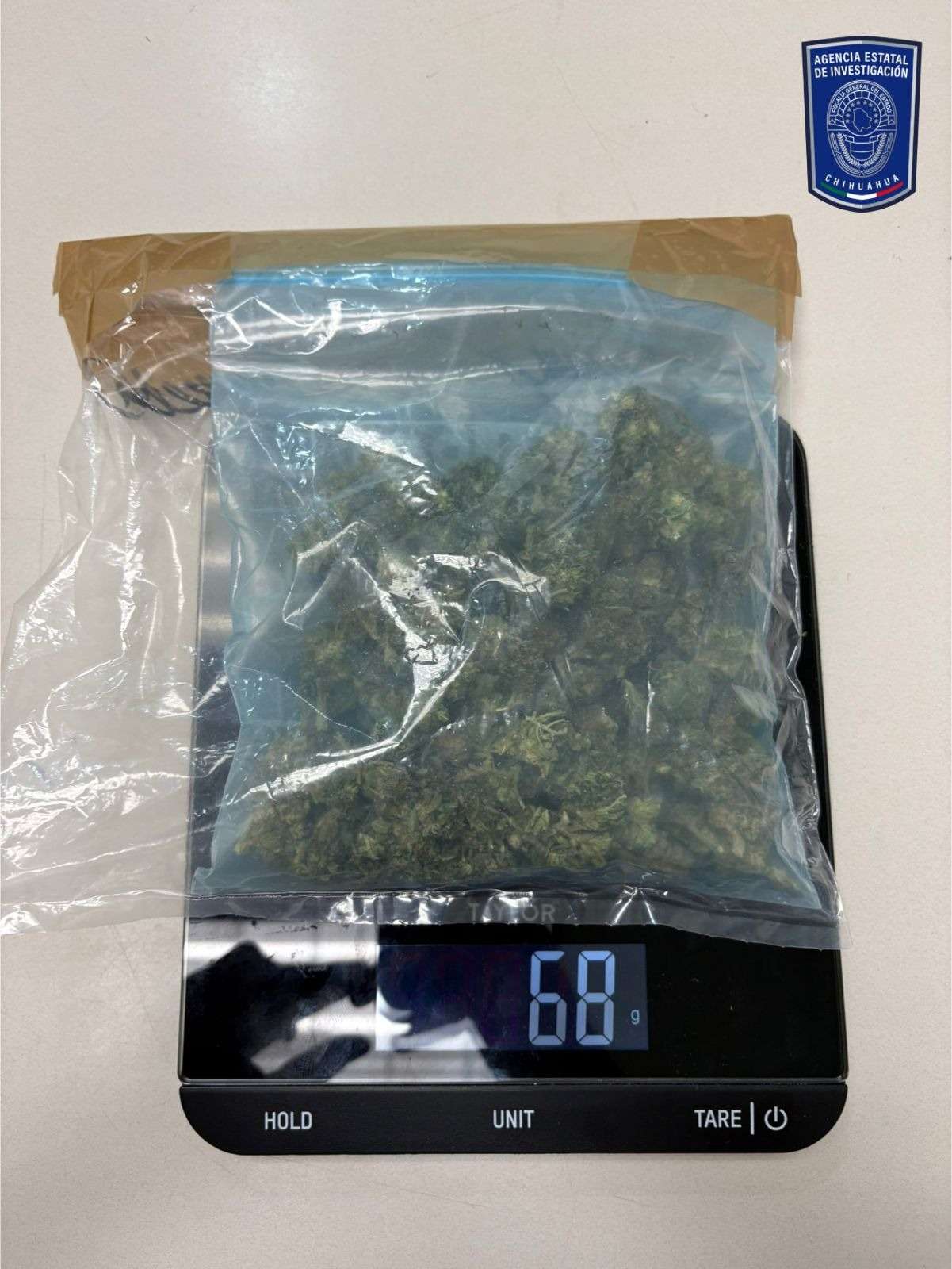 La detención en los términos de la flagrancia fue en la Avenida 16 de septiembre, ya que traía entre sus pertenencias una bolsa de plástico que contenía 68 gramos de mariguana.