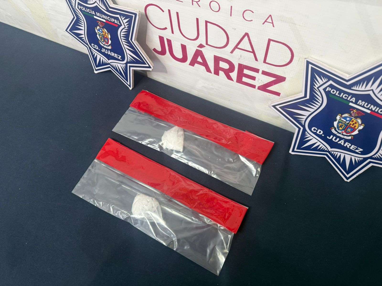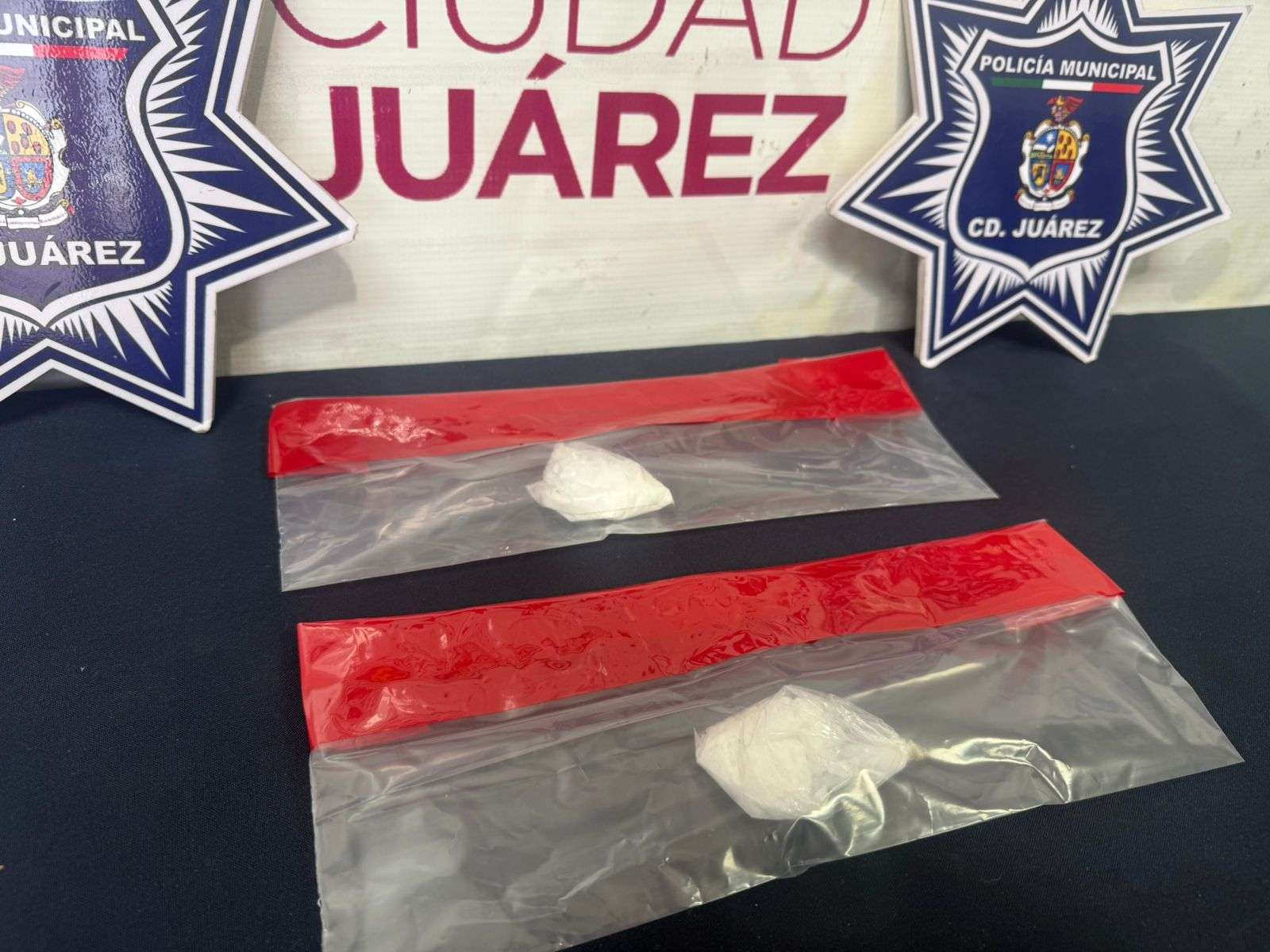 Motivo por el cual fueron abordados para verificarla situación y al ser sometidos a una revisión preventiva les localizaron a cado uno, un envoltorio de plástico con cristal con un peso de 9.9 y 10.5 gramos aproximadamente, procediendo con la detención de Manuel Sergio H. R. de 55 años y Febe Joadan B. L. de 26 años.