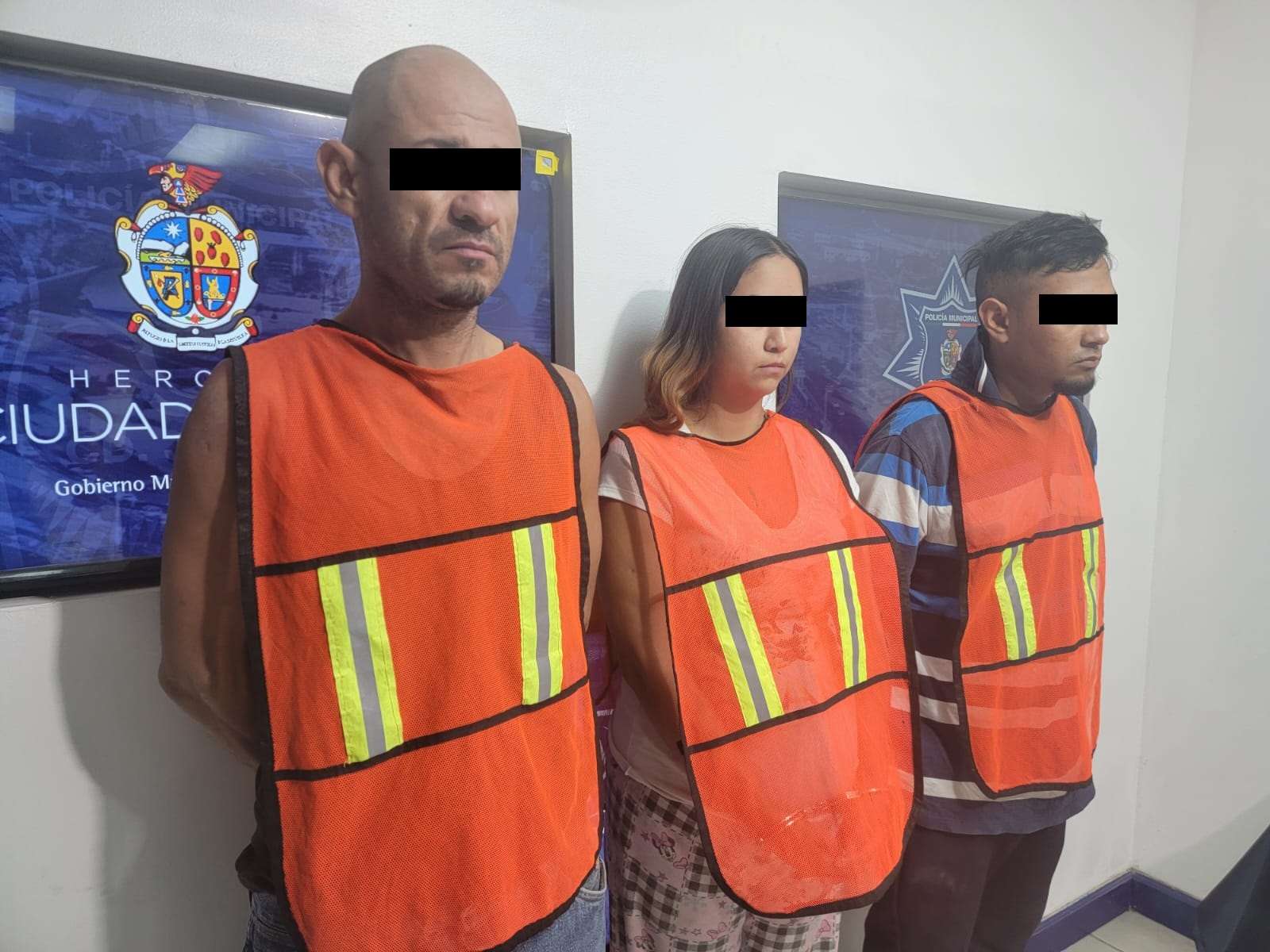Previa lectura de derechos, Jorge Alfredo E. V. de 39 años, Antonio M. R. de 26 años y María Fernanda F. R. de 23 años, fueron puestos a disposición de la autoridad correspondiente por su presunta responsabilidad en la comisión del delito antes citado.