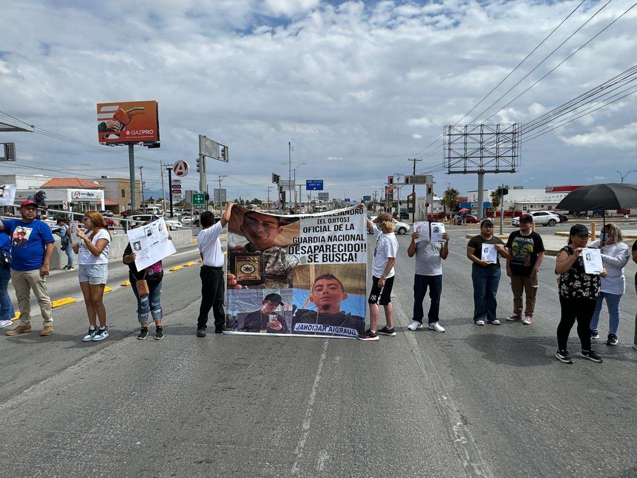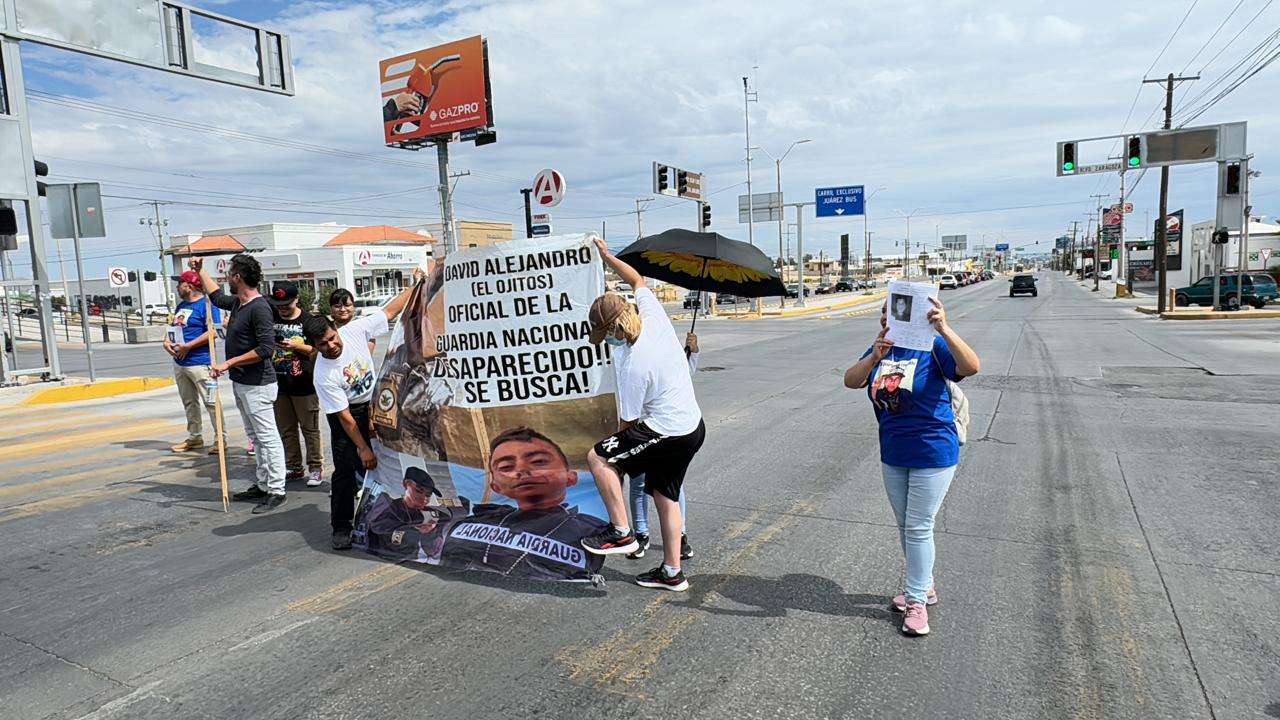 Ciudad Juárez.- Varias familias de hijos de desaparecidos bloquearon esta mañana la Avenida Tecnológico, a la altura del Boulevard Zaragoza, en una manifestación pacífica para exigir avances en los procesos de búsqueda de sus seres queridos.