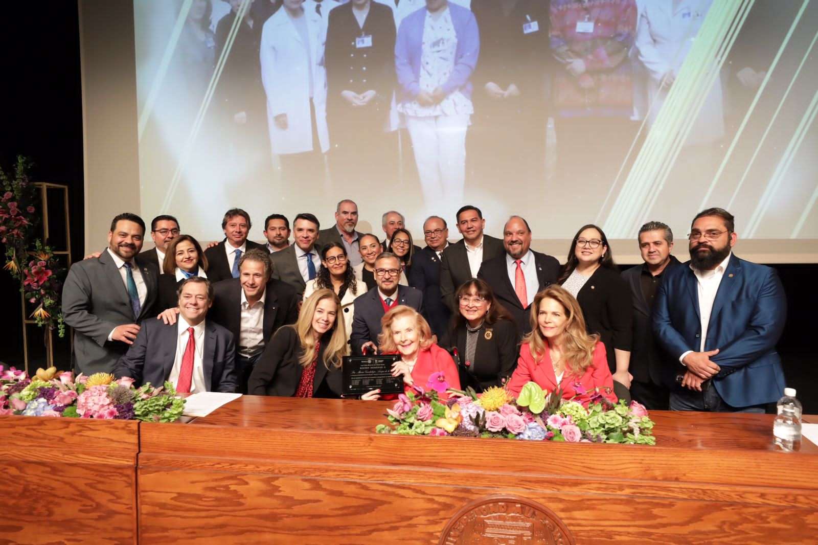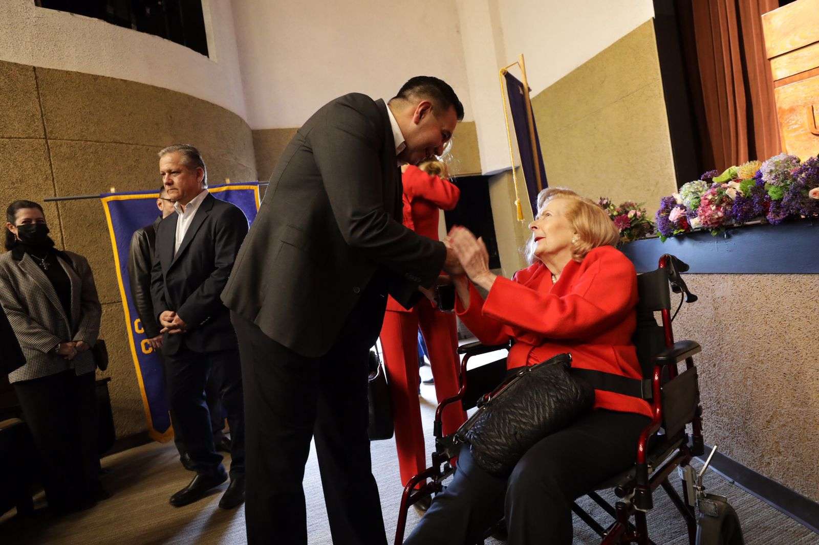Ciudad Juárez, Chih. - Reconociendo su amplia trayectoria altruista en beneficio de diversas causas sociales, principalmente en el tema de salud, este día el Presidente Municipal, Cruz Pérez Cuéllar, acompañado de su esposa Rubí Enríquez, acudió al homenaje realizado en honor a la señora María Guadalupe Arizpe de De la Vega.