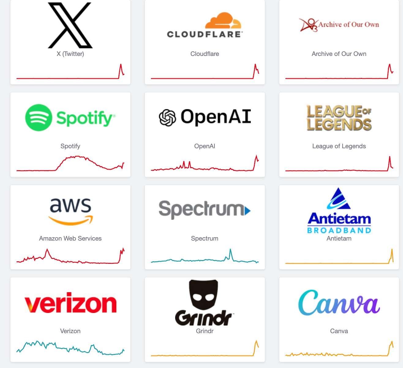 Otras aplicaciones como Letterboxd, plataformas de diseño como Canva y agregadores de noticias y música como Spotify y Menéame también sufrieron bloqueos y mostraron errores de servidor interno.