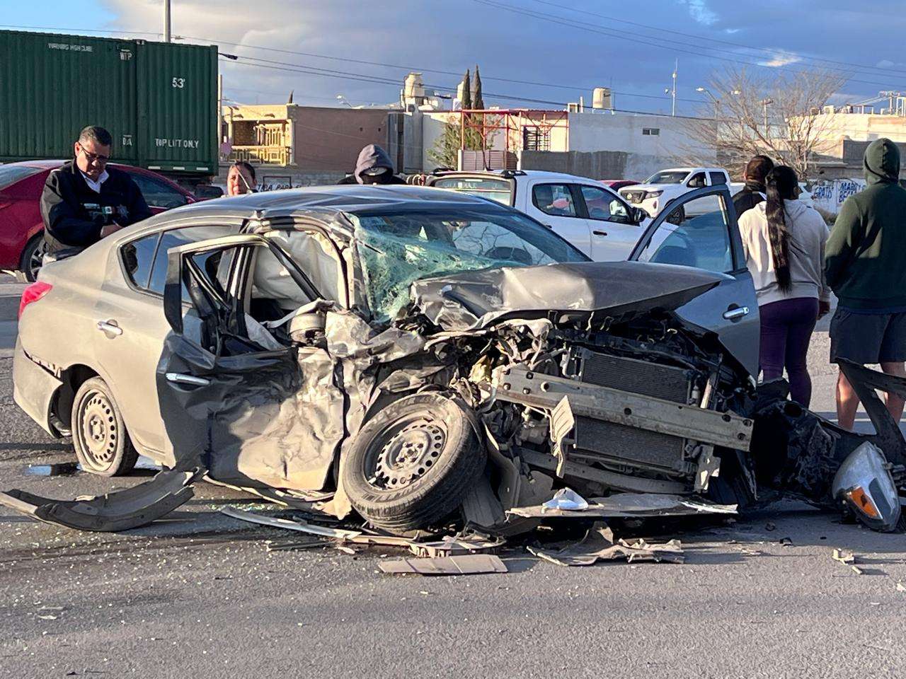 Ciudad Juárez.- Un accidente vial se registró en el cruce del bulevar Independencia y Yepomera, donde un vehículo conducido por un chófer de plataforma terminó impactado de frente contra un tráiler.
