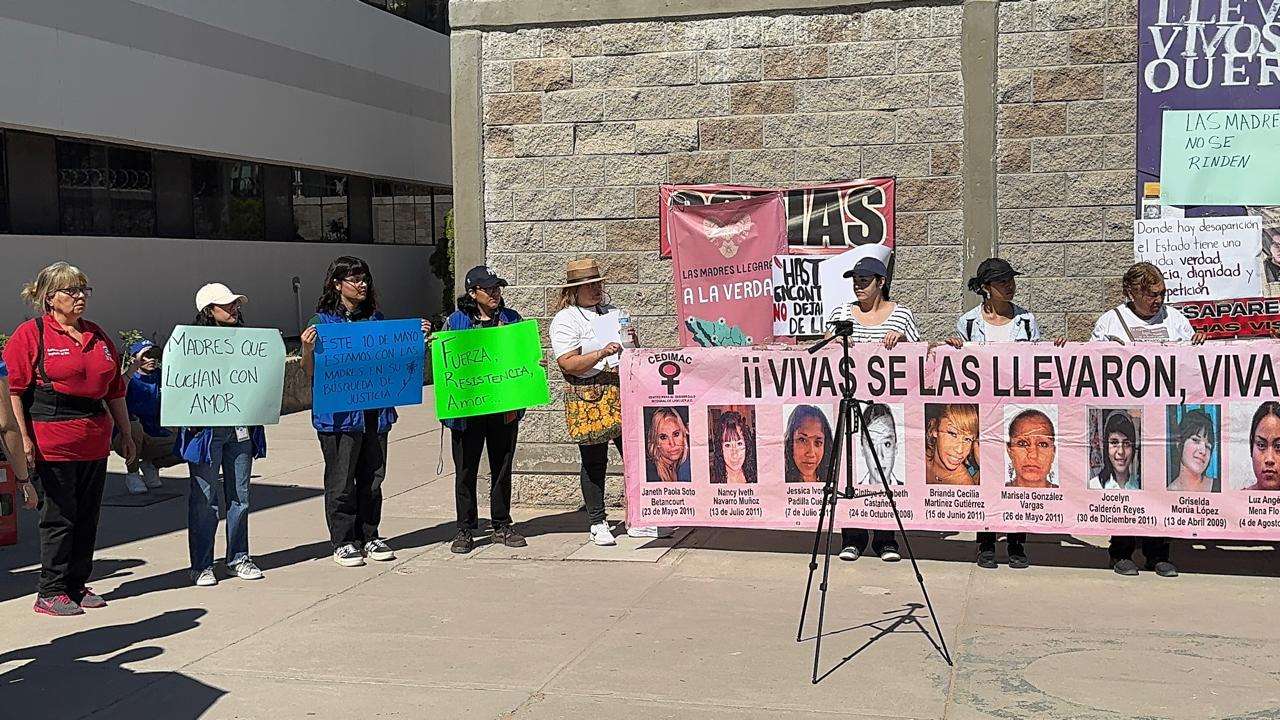 Ciudad Juárez.– Entre 50 y 60 madres buscadoras se manifestaron este viernes a las afueras de la Fiscalía de Distrito Zona Norte, en un reclamo por la falta de avances en las investigaciones sobre la desaparición de sus hijas.