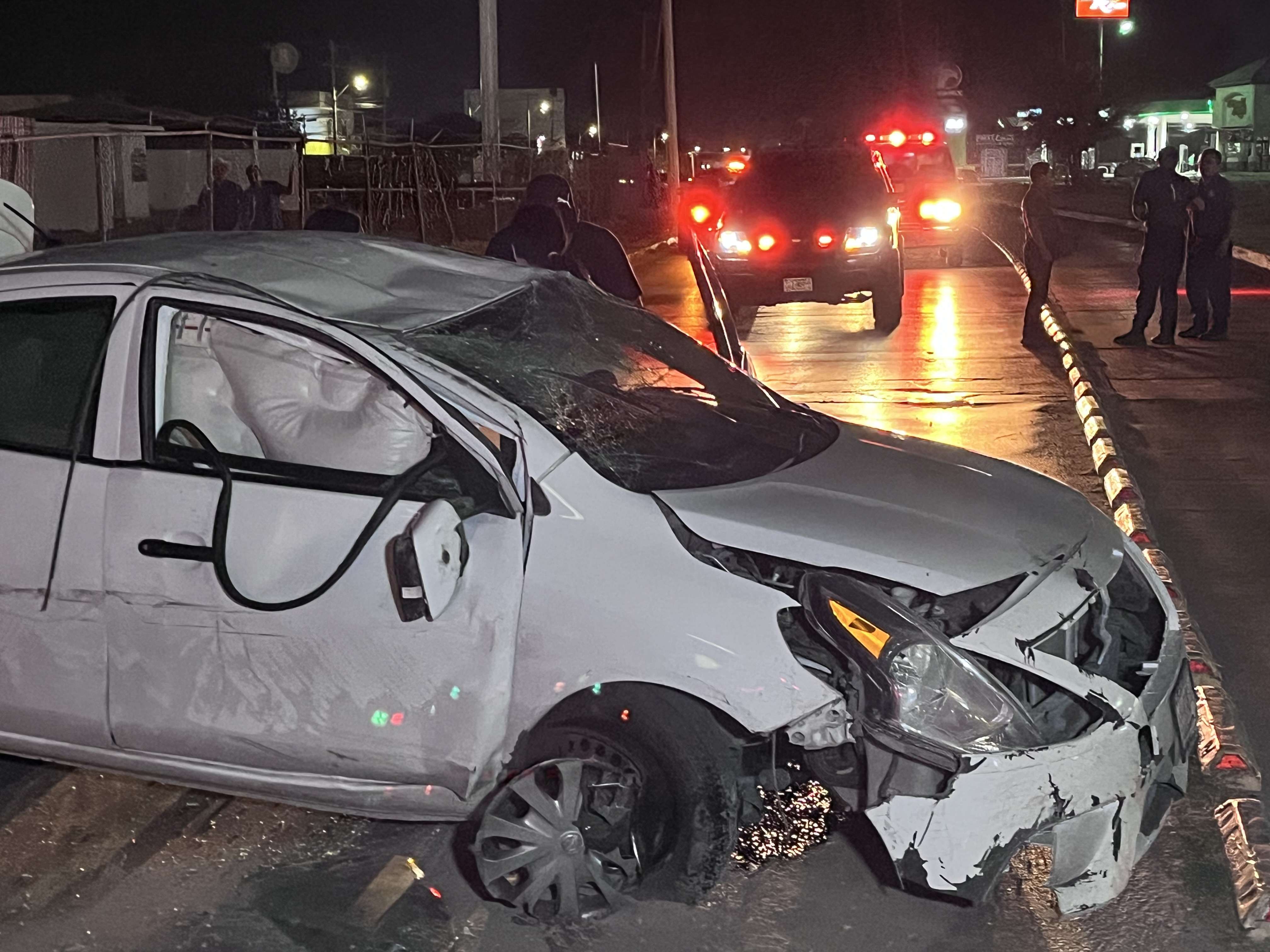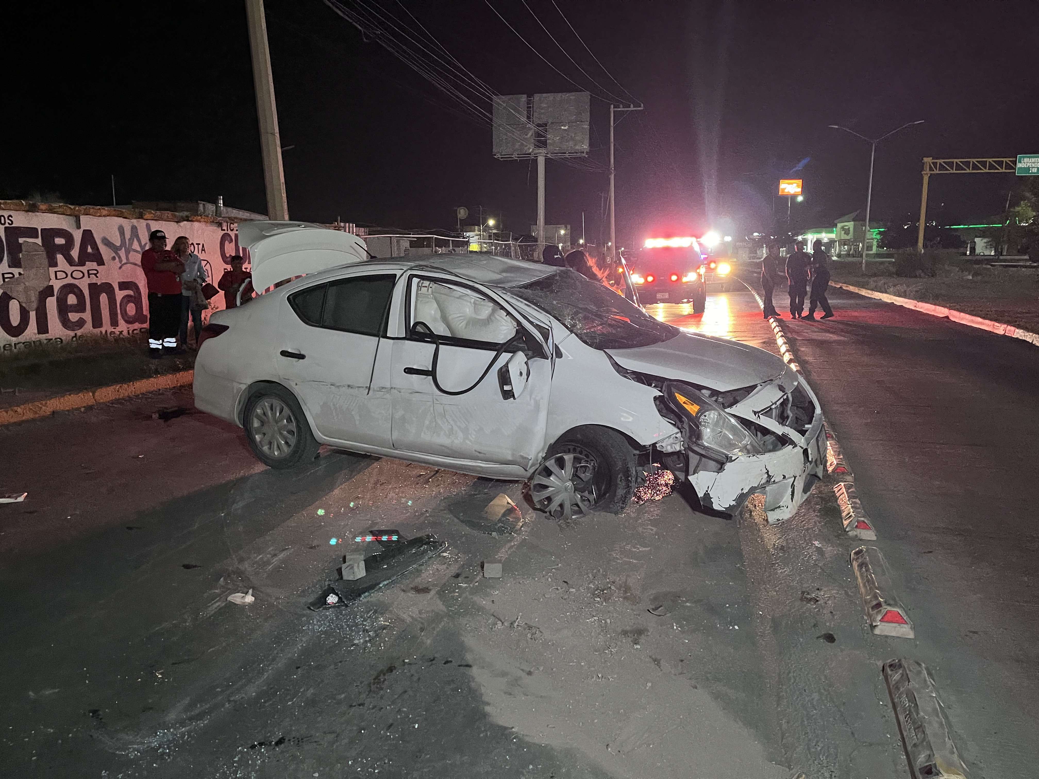Ciudad Juárez.- El conductor de un automóvil Nissan versa resultó lesionado después de chocar y terminar con las llantas hacia arriba sobre el bulevar Zaragoza.