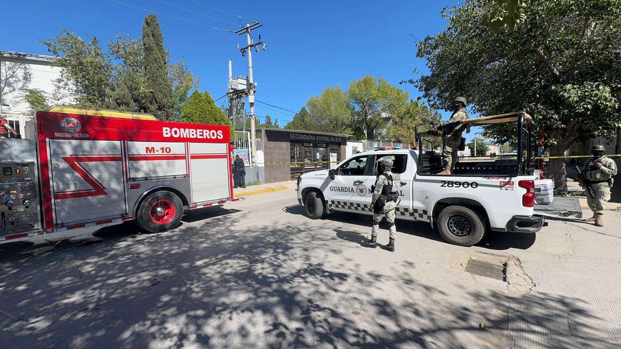 Ciudad Juárez.- Una amenaza de bomba en la secundaria estatal 3016 provocó una intensa movilización policiaca y el desalojo de las y los estudiantes al estacionamiento del Centro Cultural Paso del Norte.