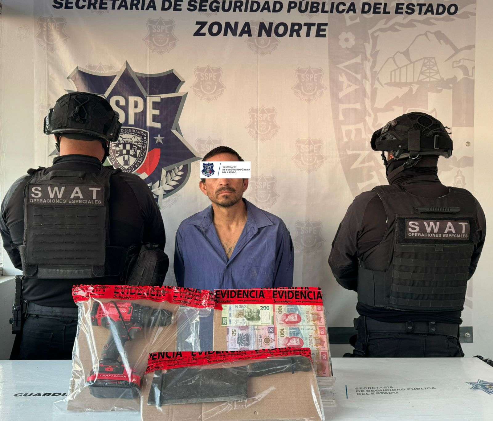 Horas más tarde, los recorridos tácticos de seguridad llevaron a la detención de Jaime A.R. por la supuesta comisión del delito de robo con violencia a un local comercial. Al hombre se le aseguró un cuchillo y dinero en efectivo, el cual había sido sustraído del local.