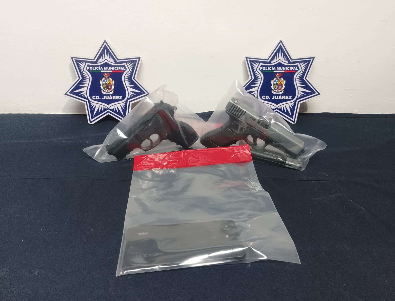 De igual manera durante las indagatorias en el lugar, y tras realizarles una inspección preventiva por protocolos de seguridad se aseguraron dos réplicas de armas de fuego, las cuales les fueron localizadas a quienes dijeron llamarse Adán M. H. de 18 años y Carlos Alexis R. E. de 19 años.