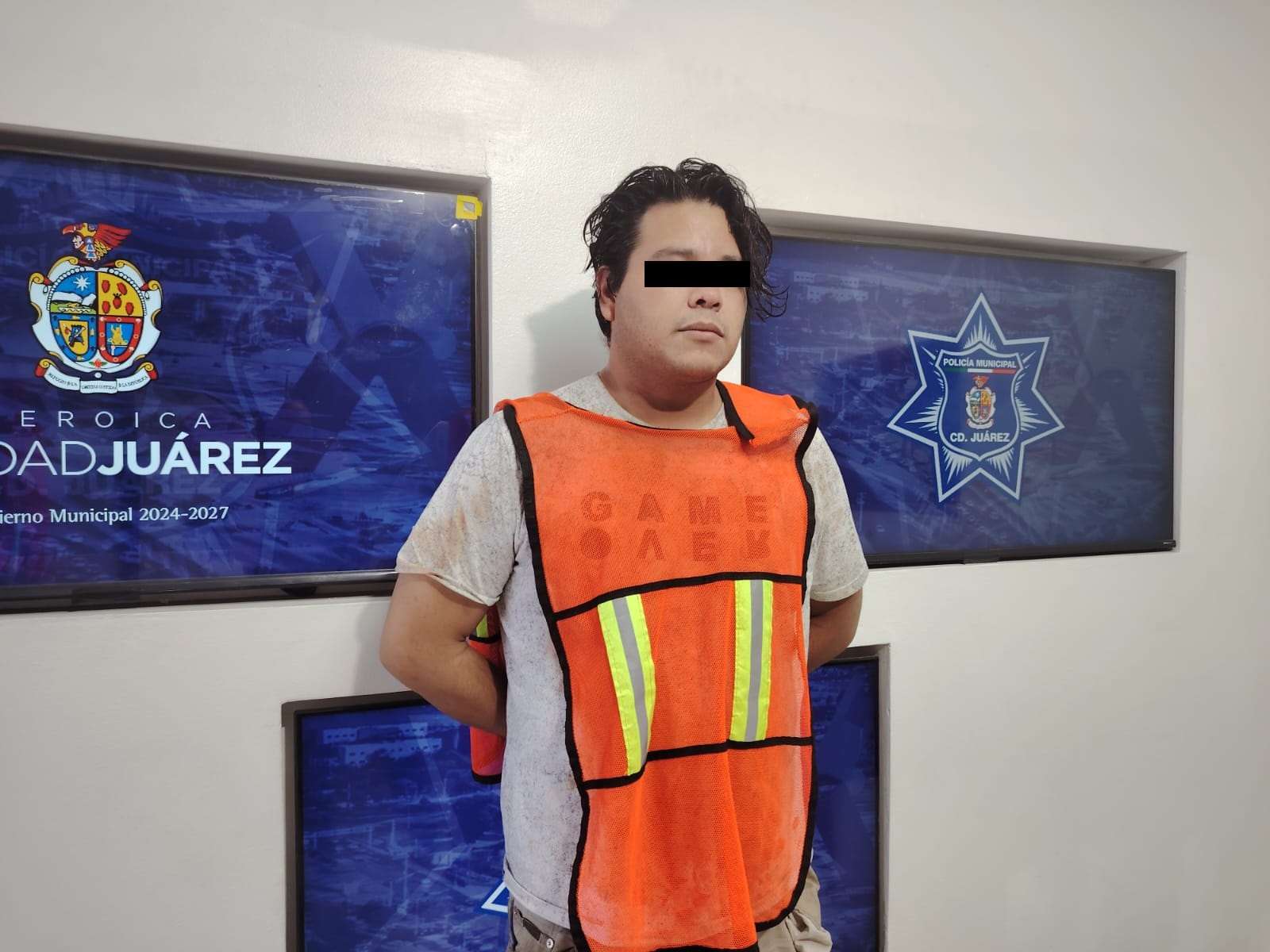 Ciudad Juárez.- Elementos de la Secretaría de Seguridad Pública Municipal adscritos al agrupamiento de K-9, realizaron la detención de Daniel Eduardo S. A., por su presunta responsabilidad en la comisión de delitos contra la salud y/o lo que resulte.