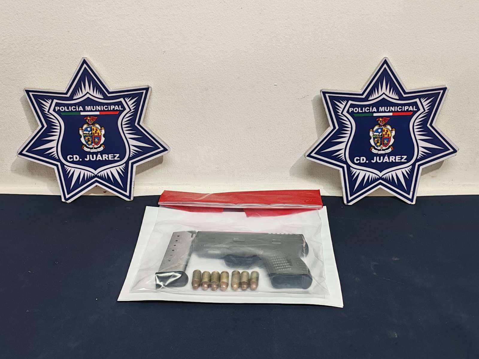 Ciudad Juárez-. Elementos de la Secretaría de Seguridad Pública Municipal arrestaron a Marco Antonio I. S. y Lizbeth Kareli P. G., por su presunta responsabilidad en la comisión de delitos contra la ley federal de armas y explosivos y posesión de vehículo con reporte de robo.