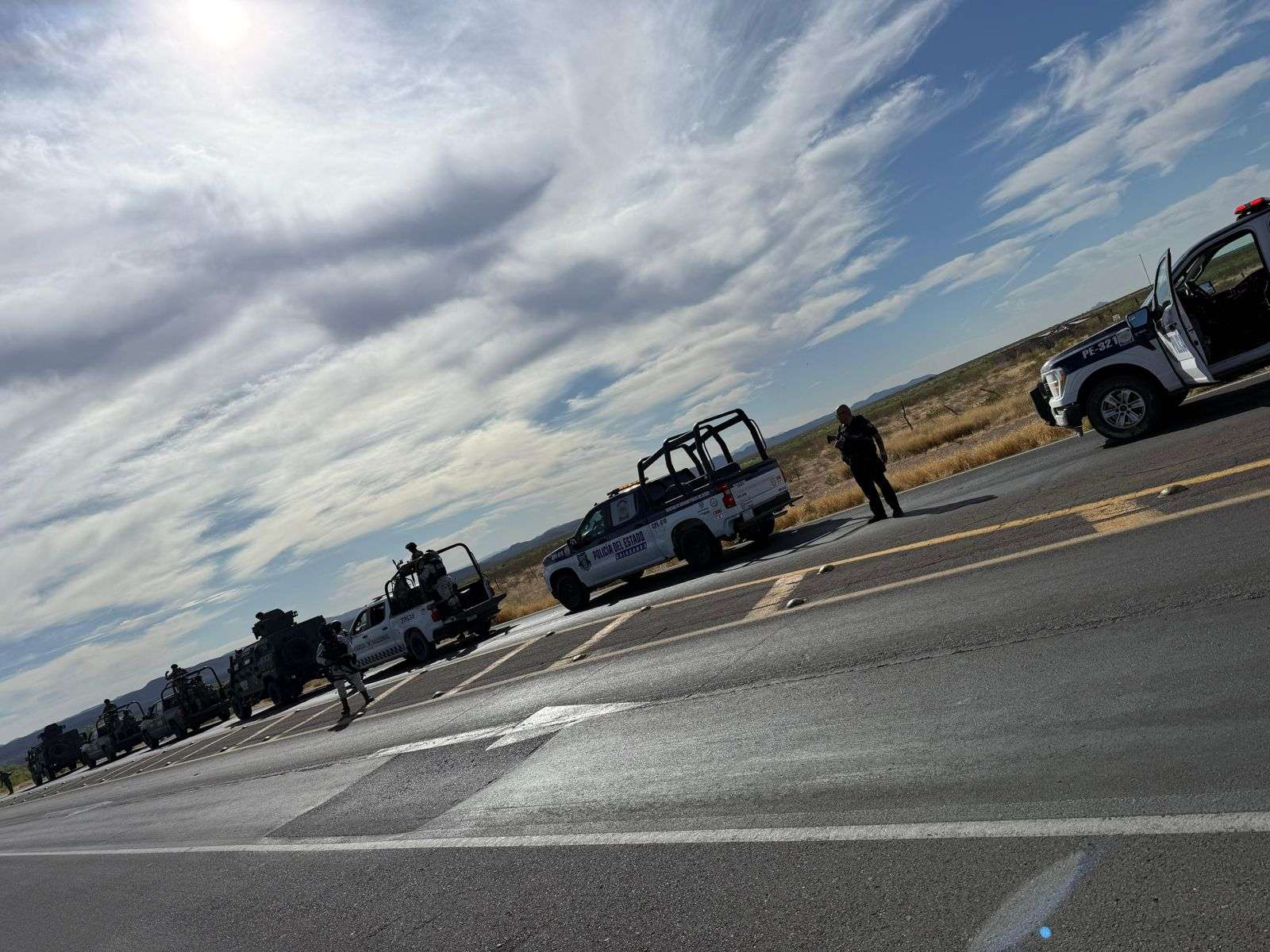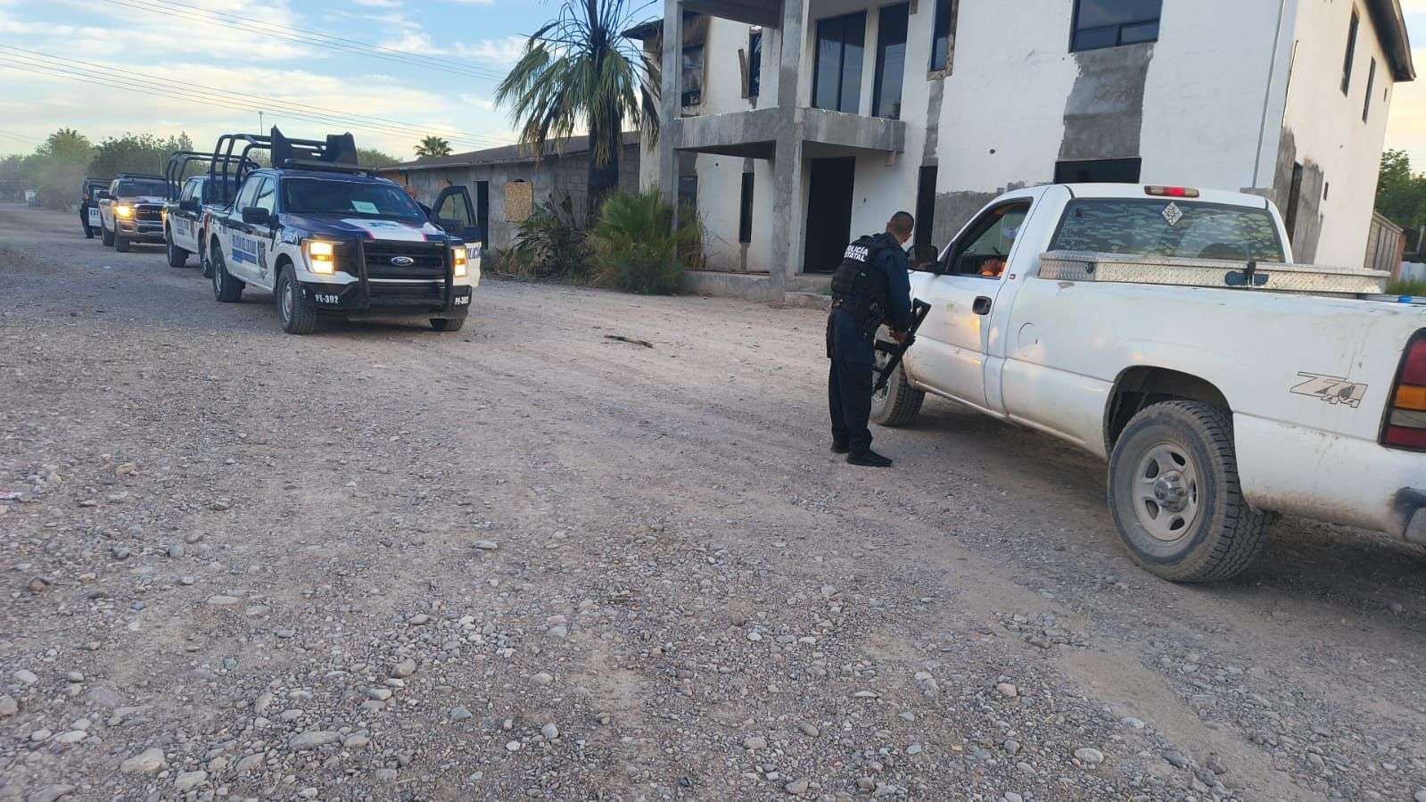 Al reportar el incidente se desplegó un operativo terrestre con elementos de la SSPE, GN, y Defensa, el cual logró asegurar un rancho en cuyo interior se localizaron tres camionetas con armamento, al estar realizando el aseguramiento, civiles dispararon en contra de los elementos, quienes lograron repeler el ataque de manera inmediata y comenzaron una persecución por las brechas del lugar.