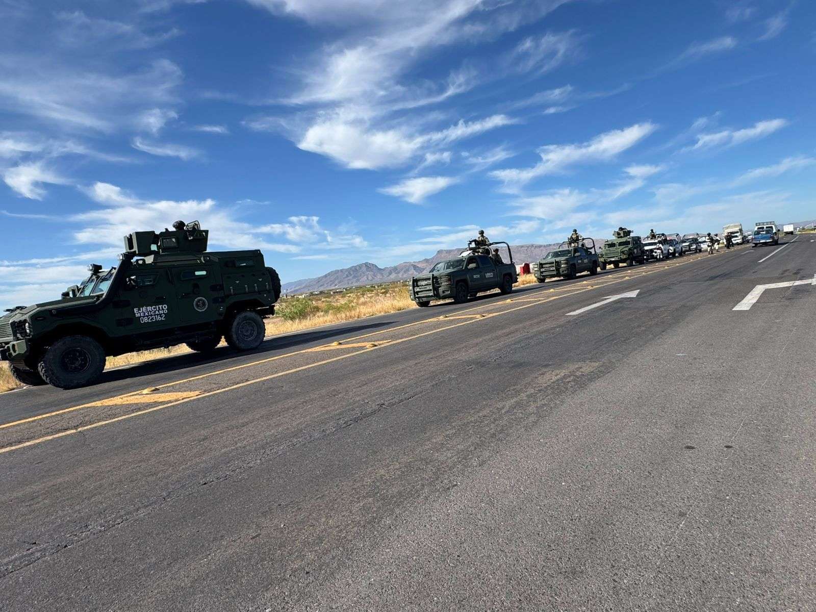 Cabe mencionar que derivado de un fuerte operativo que se desplegó en la región, civiles armados incendiaron una tienda de conveniencia (Oxxo) en el municipio de Aldama y robaron un camión de pasajeros para bloquear la carretera de Aldama a Ojinaga.