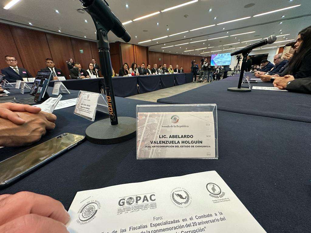 Chihuahua, Chih.- Como parte de su participación como ponente en el conversatorio Convención Nacional de Fiscales Anticorrupción, realizado en el Senado de la República, el titular de la FACH, Abelardo Valenzuela, expuso los temas de éxito en Chihuahua en materia de delitos por hechos de corrupción, como lo son el llevar a proceso judicial a tres ex secretarios de Gobierno, ( Hacienda , hoy sustraído de la justicia, el de Salud Vinculado a proceso y el de Comunicacion Social actualmente detenido )la Vinculación del exauditor Superior del Estado, igual que otros servidores públicos.