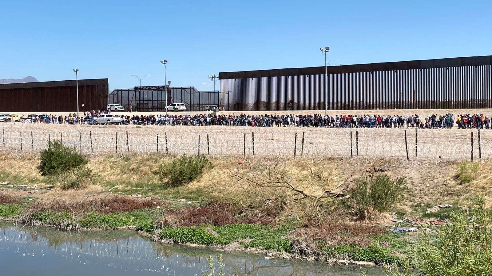 Ciudad Juárez.- Cientos de migrantes arribaron esta mañana a la puerta 36 del muro fronterizo para hacer fila y entregarse a las autoridades de Estados Unidos.