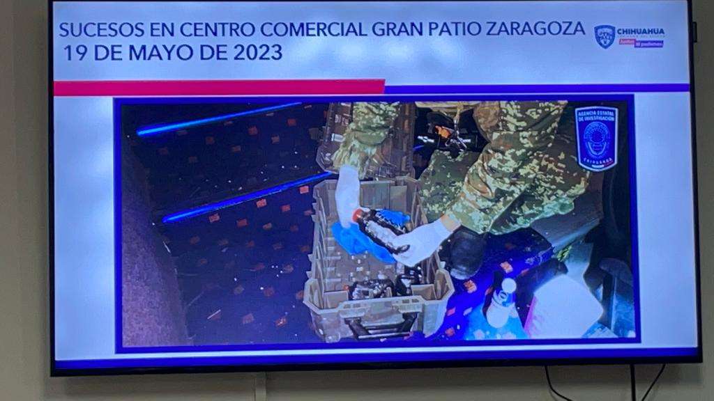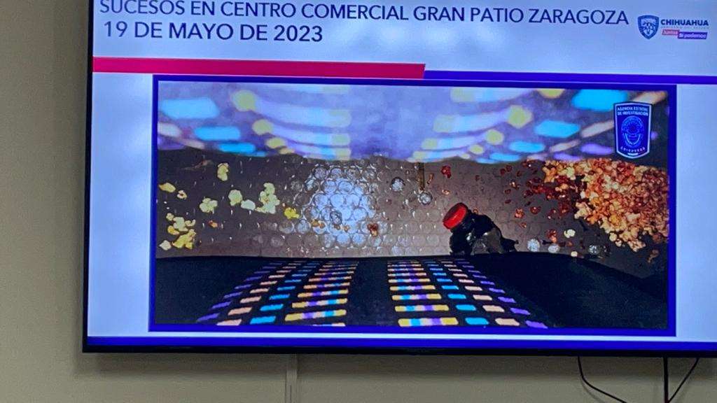 Juárez, Chih.- El Coordinador de la Fiscalía, Christian Emanuel Campos dio a conocer en rueda de prensa imágenes que muestran al responsable de colocar bombas molotov en Cinépolis de la plaza "Gran patio" en Ciudad Juárez.