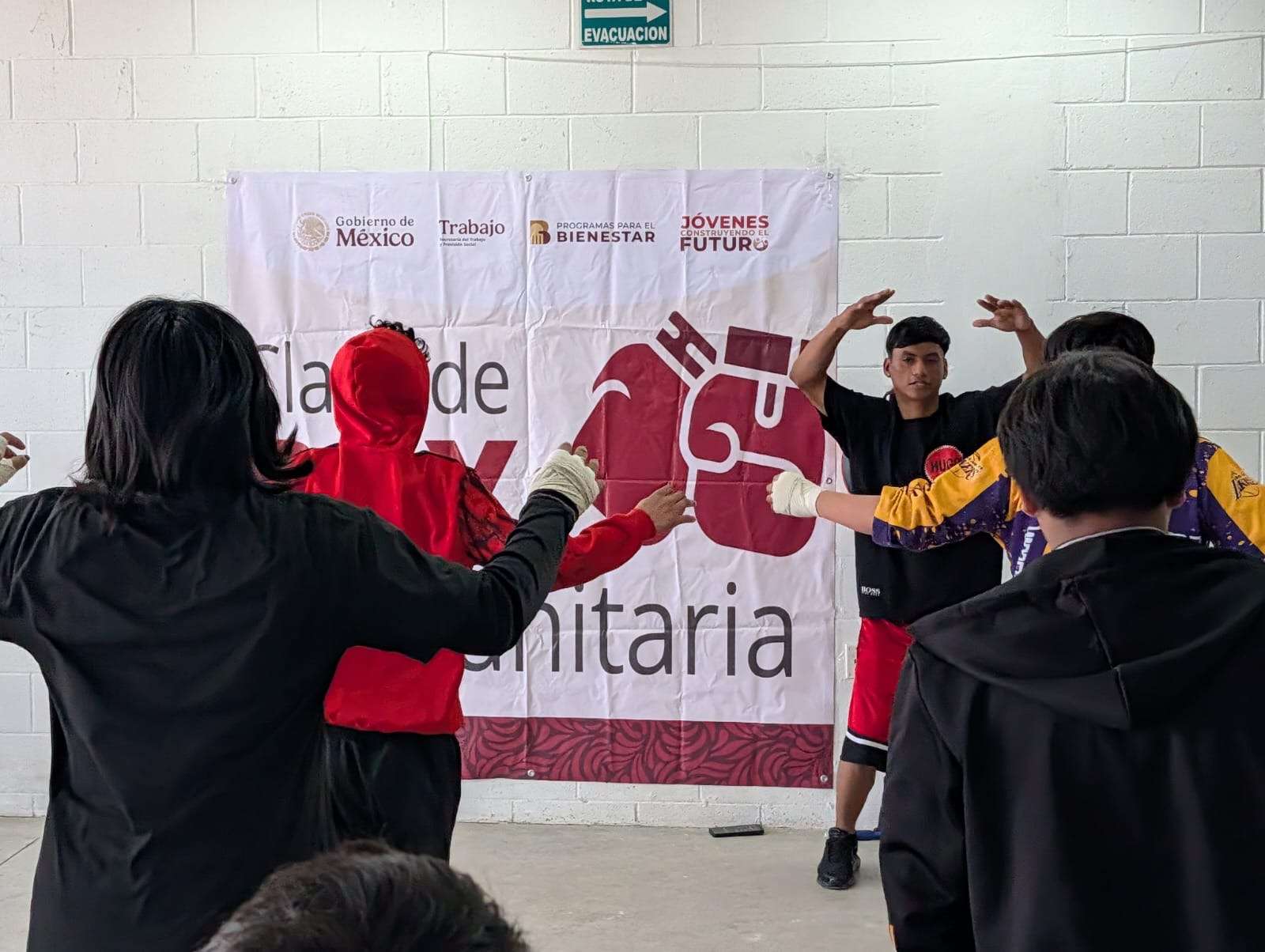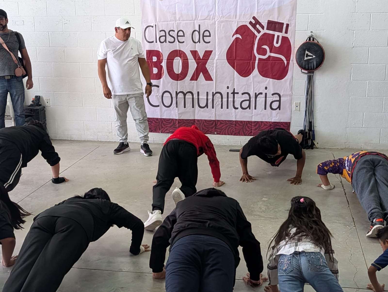Ciudad Juárez.- Con el objetivo de fomentar el crecimiento personal y profesional de las juventudes en Ciudad Juárez, la Dirección General de Centros Comunitarios llevó a cabo este sábado una clase de box comunitaria en el Centro Comunitario Riberas del Bravo, como parte del seguimiento al programa federal “Jóvenes Construyendo el Futuro”.