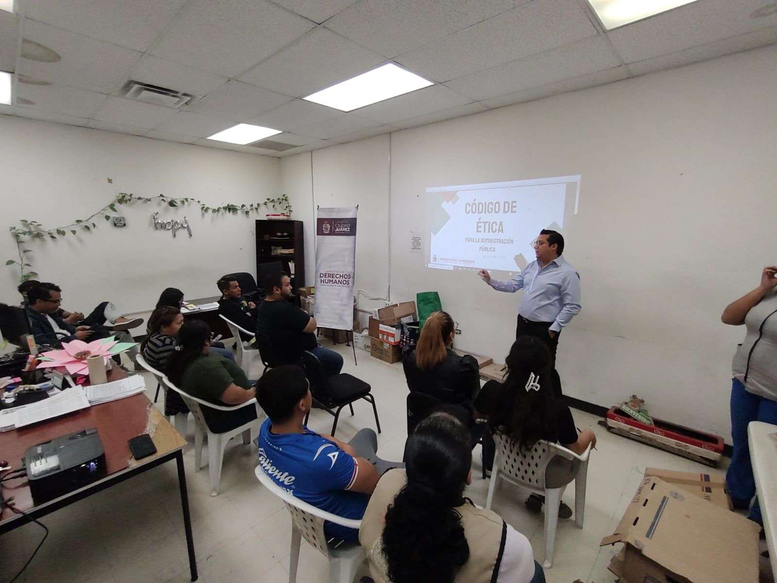 El titular de la dependencia municipal, Santiago González Reyes, informó que esta plática se dio con el propósito de fortalecer la cultura de integridad, legalidad y respeto en el ejercicio de la función pública.