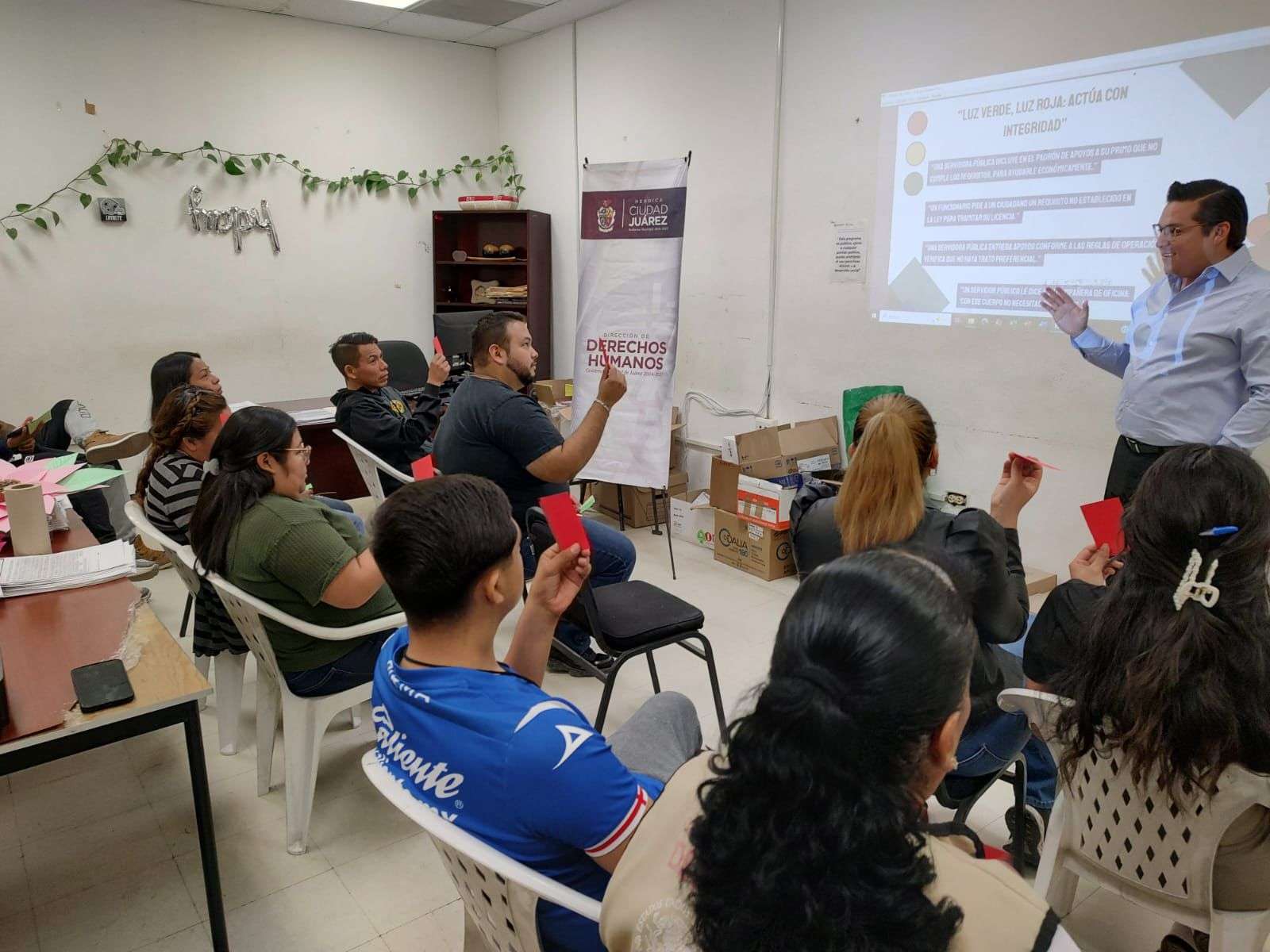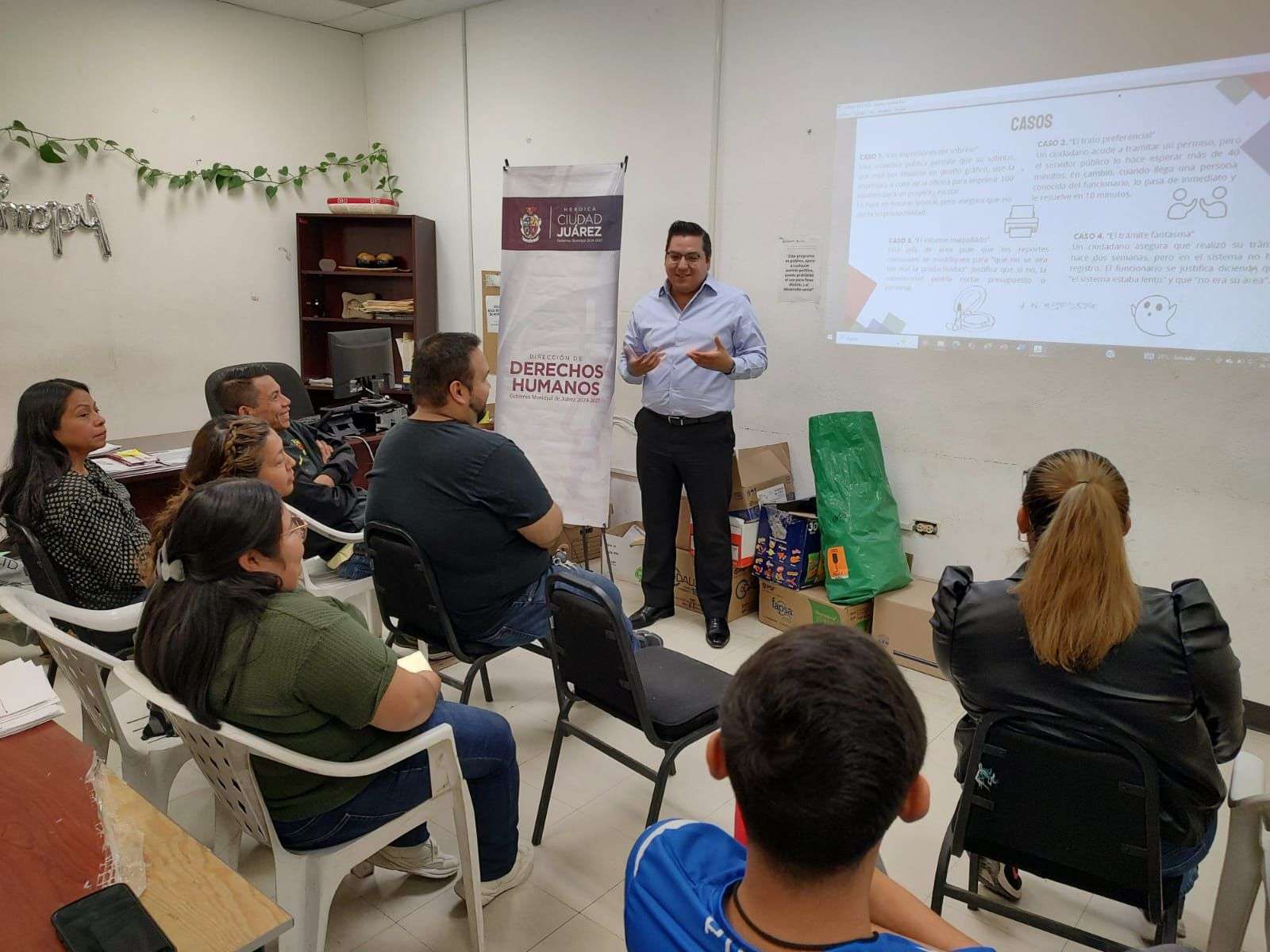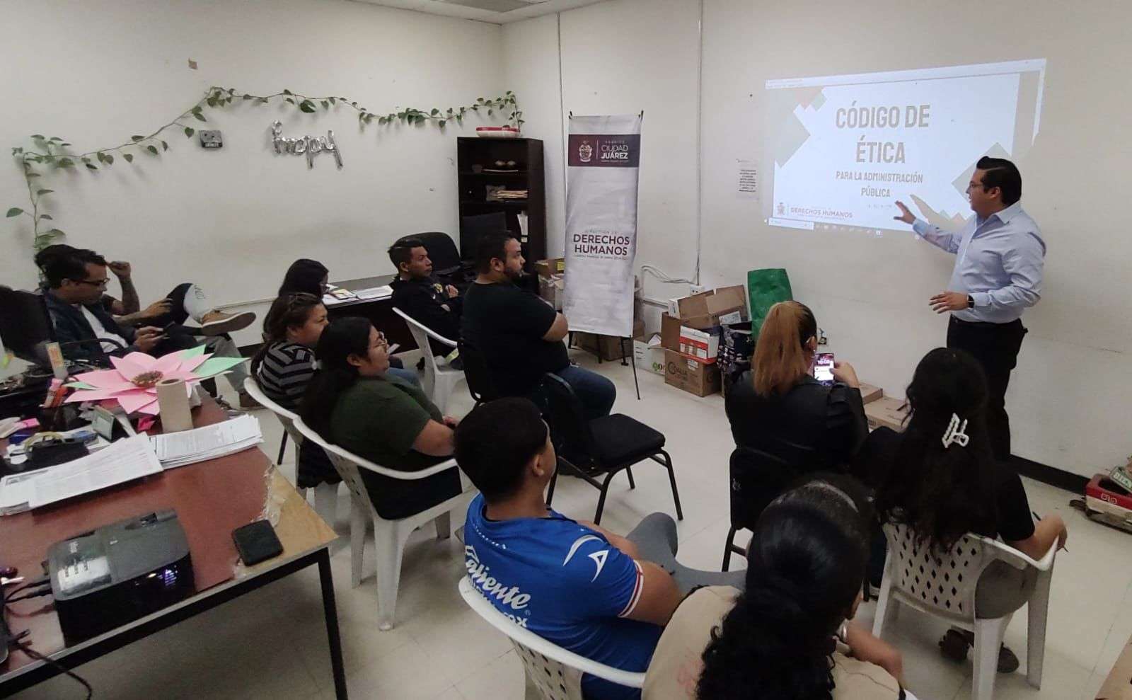 Ciudad Juárez.- Personal de la Dirección de Derechos Humanos del Municipio impartió el curso "Código de Ética para el Servicio Público" al personal de la oficina de Bienestar del Gobierno Federal.