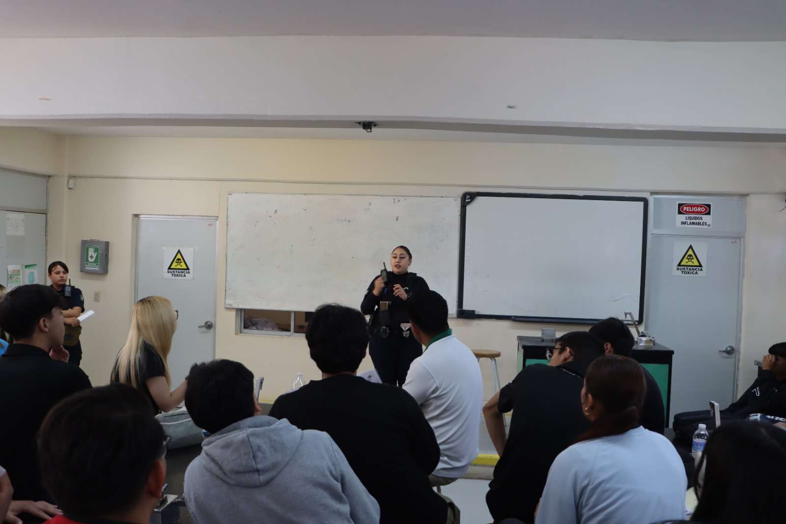 Ciudad Juárez.- Con el objetivo de fomentar una cultura de respeto y prevenir la violencia escolar, la Secretaría de Seguridad Pública Municipal a través de la Dirección de Prevención Social, impartió una plática informativa a estudiantes de la preparatoria CECyTECH Plantel 7, ubicado en las calles Morelos y Guadalupe Victoria, en el poblado de San Isidro.