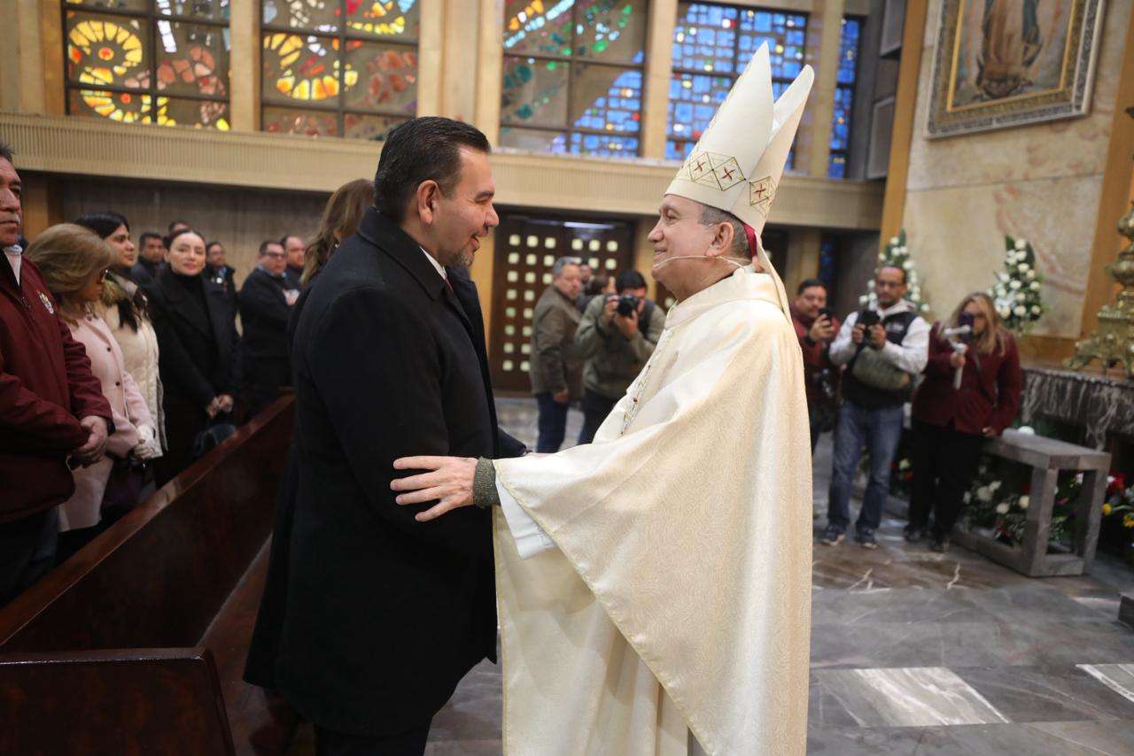Ciudad Juárez.- El Presidente Municipal, Cruz Pérez Cuéllar, en compañía de su esposa Rubí Enríquez, acudió a la misa celebrada en la Catedral de Nuestra Señora de Guadalupe, con motivo de la celebración del 366 aniversario de la Fundación de Ciudad Juárez.