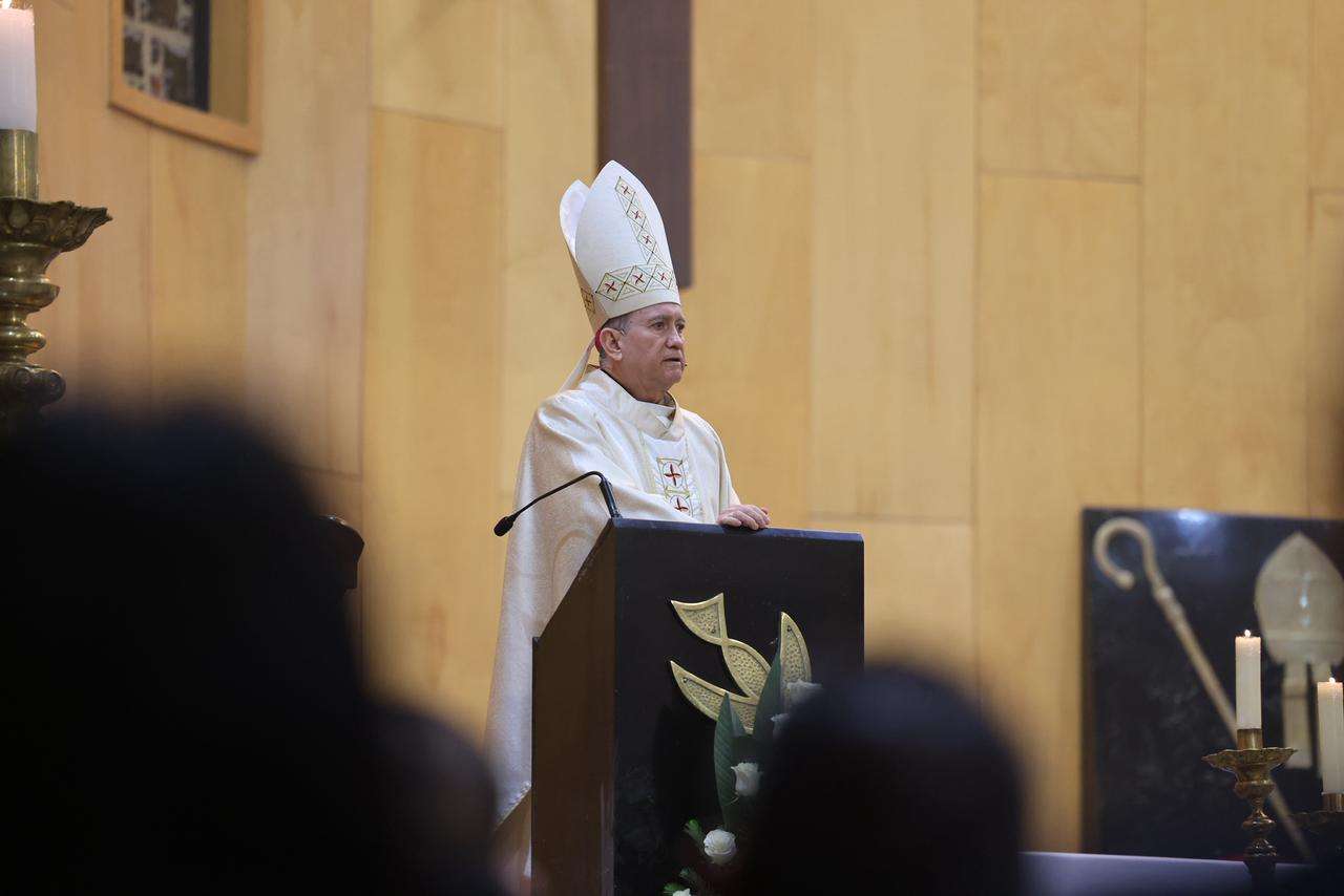 La celebración eucarística fue presidida por el Obispo de la Diócesis de Ciudad Juárez, José Guadalupe Torres Campos, quien recordó el decreto de fundación de esta frontera por Fray García de San Francisco en 1659.