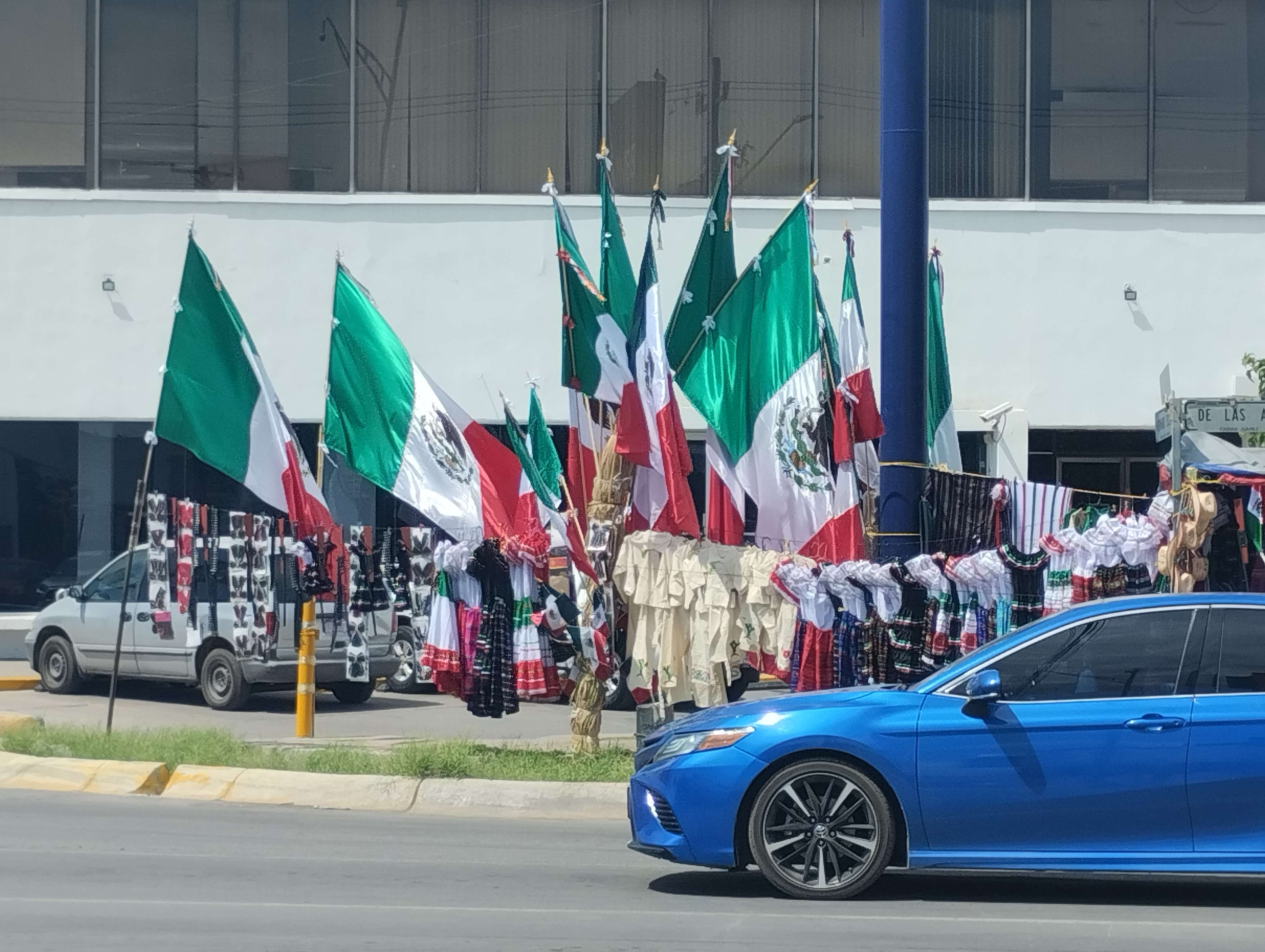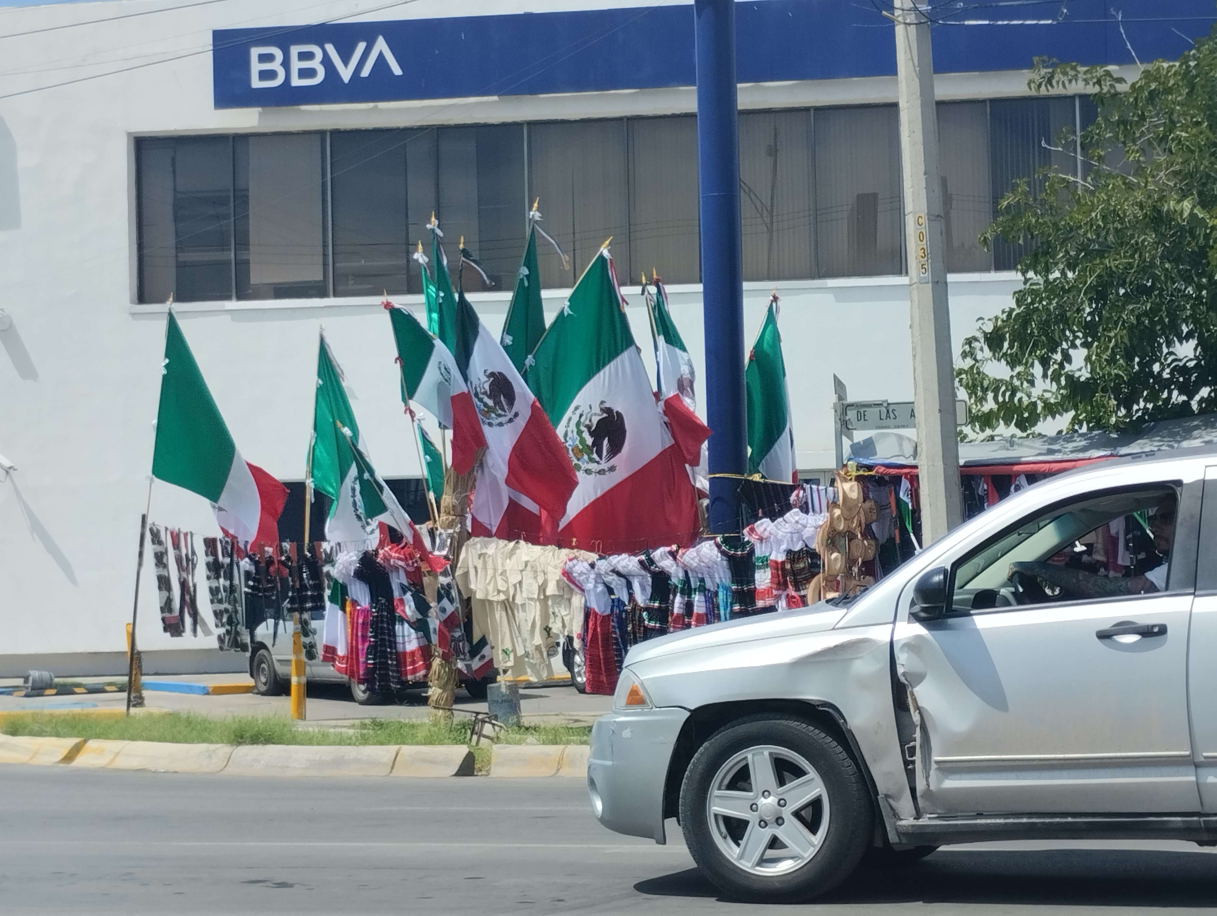 Ciudad Juárez.- Banderas, trompetas, vestidos tipicos mexicanos, sombreros de ala ancha y sobre todo los colores patrios invaden las calles de la frontera a unos días de celebrarse las fiestas patrias.