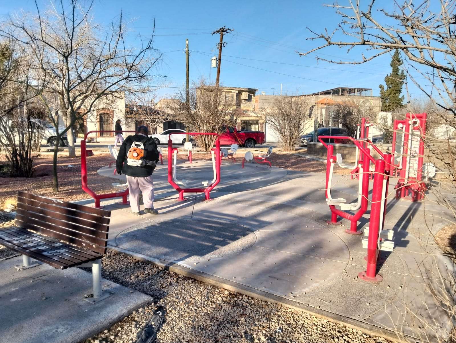 Ciudad Juárez.- La Dirección General de Servicios Públicos, a través de la Dirección de Parques y Jardines, realizó trabajos de mantenimiento general en el parque Chaveña, ubicado entre las calles Libertad y Antonio Espejo, con el propósito de ofrecer espacios más limpios, seguros y agradables para la convivencia familiar,