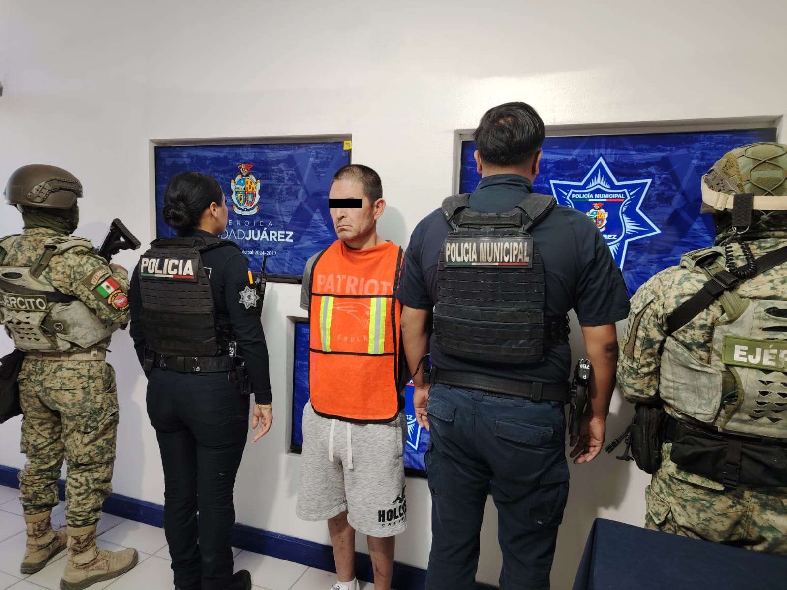 Ciudad Juárez.- Agentes de la Secretaría de Seguridad Pública Municipal arrestaron a Roberto F. O., por su presunta responsabilidad en la comisión de delitos contra la salud y violación a la ley federal de armas de fuego y explosivos.