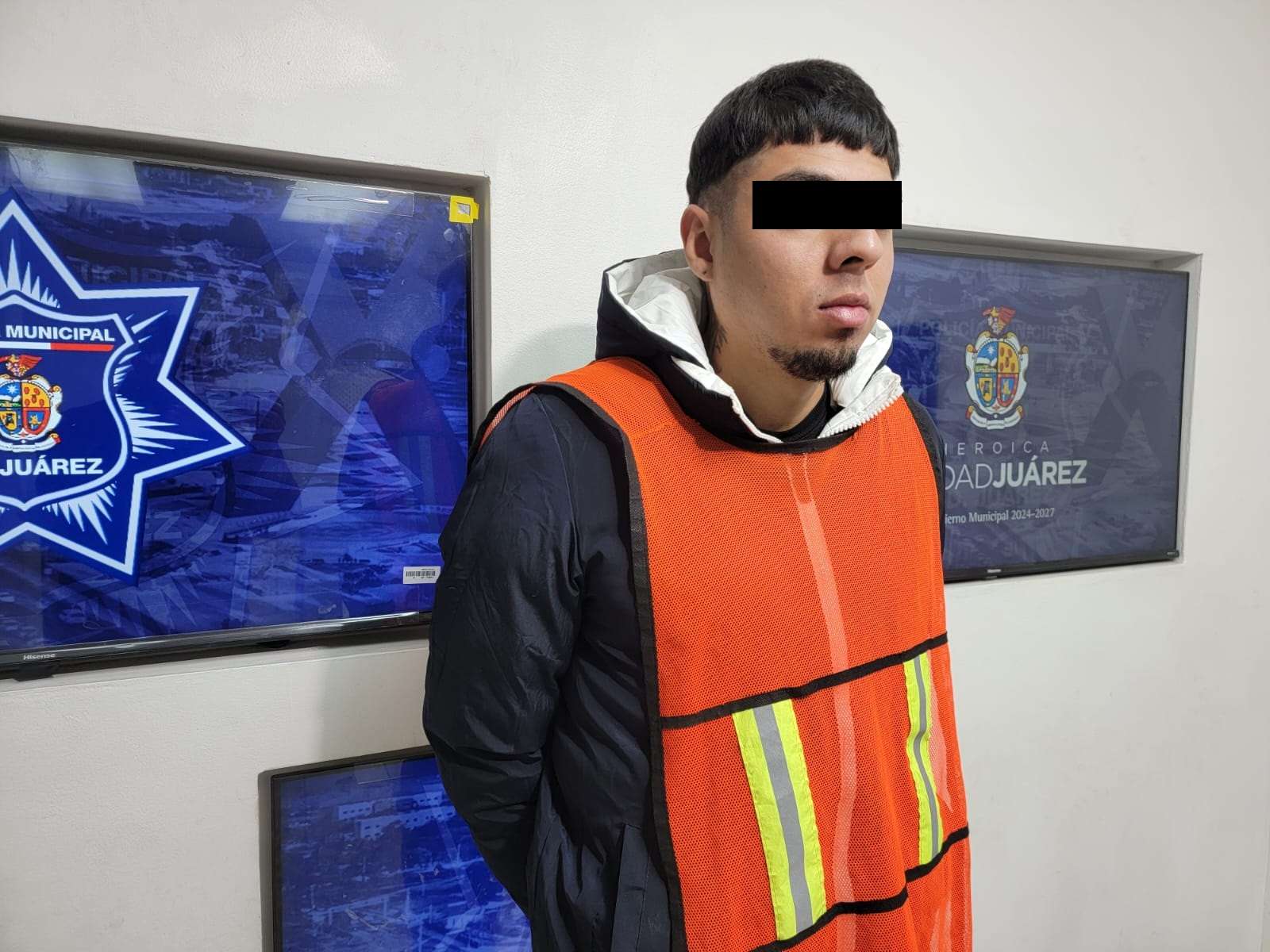 Ciudad Juárez-. Elementos de la Secretaría de Seguridad Pública Municipal arrestaron a Yair Alexey R. A., por su presunta responsabilidad en la comisión de delitos contra la ley federal de armas de fuego y explosivos.