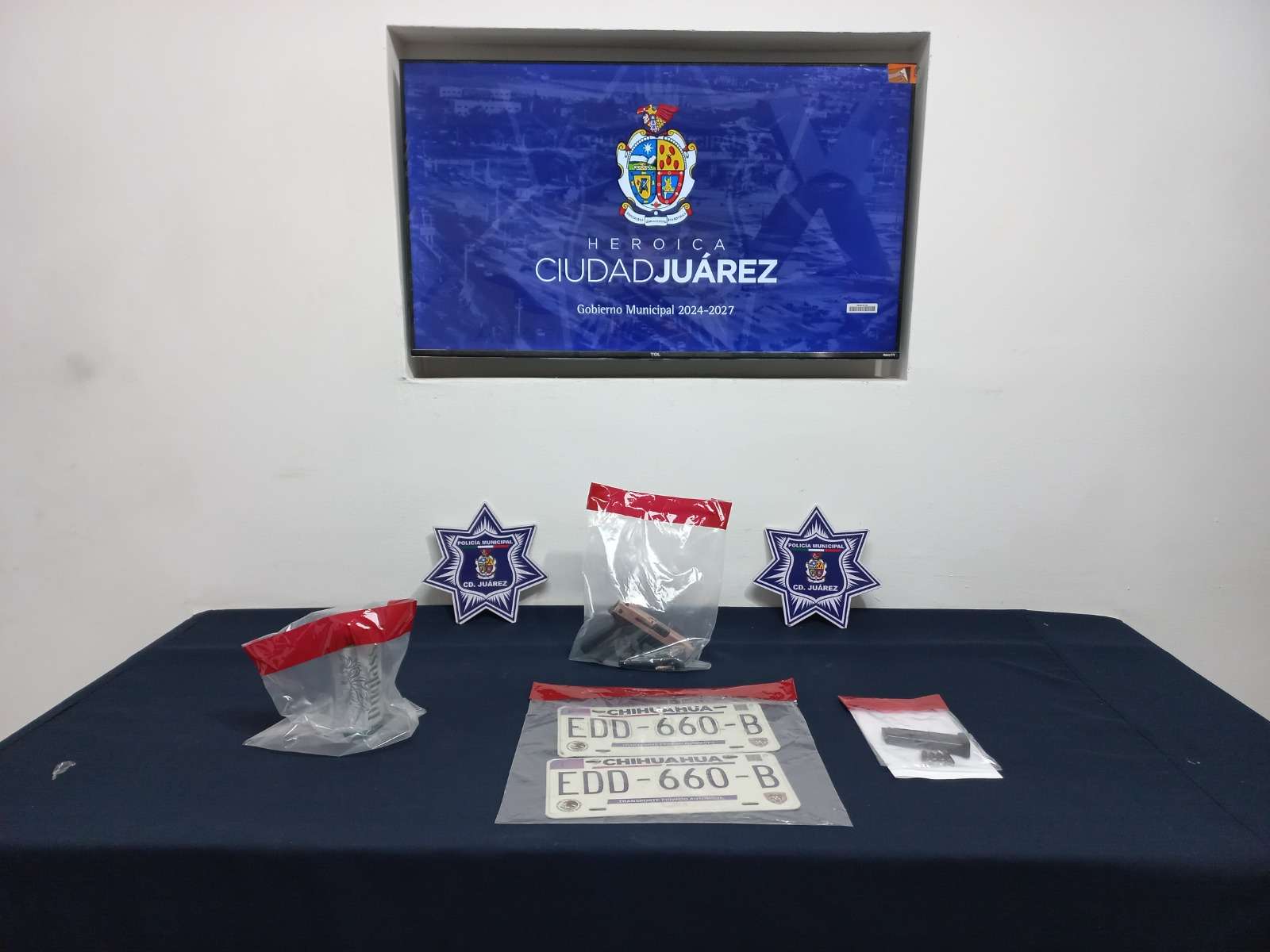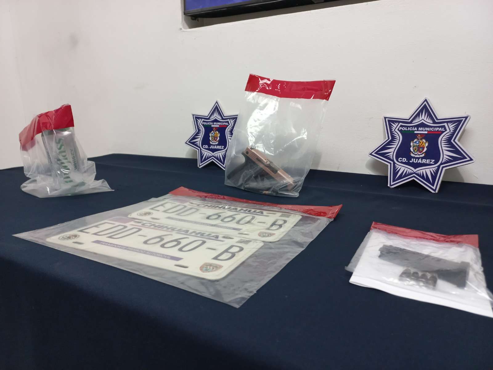 Ciudad Juárez.- Elementos de la Secretaría de Seguridad Pública Municipal, realizaron la detención de José Carlos C. J., por su presunta responsabilidad en la comisión de delitos contra la ley federal de armas de fuego y explosivos, así como por elaboración, alteración y uso indebido de documentos.