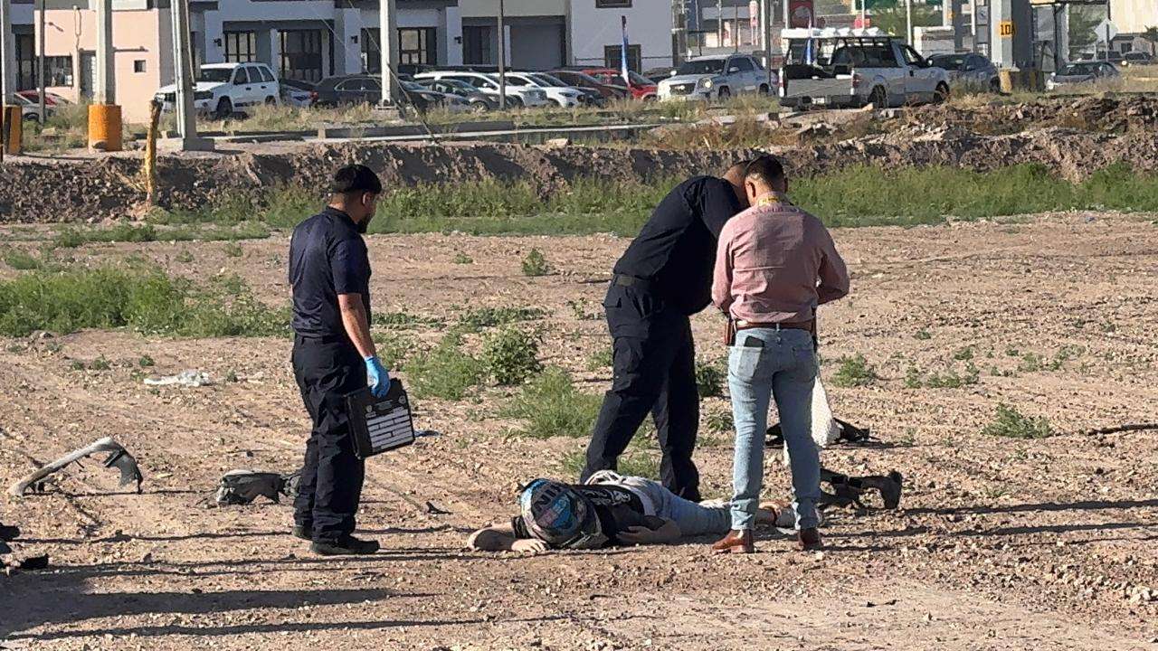 El cuerpo del motociclista quedó en un lote baldío de la calle Camino Viejo a San José y Villarreal Torres y autoridades informaron que no encontraban la motocicleta por lo que presumen que fue robada del lugar.