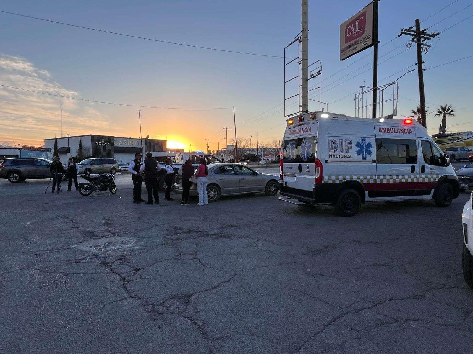 Ciudad Juárez.- Una mujer y un hombre resultaron con lesiones luego de un choque entre una motocicleta y un vehículo ocurrido en el cruce de la avenida Abraham Lincoln y la calle David Herrera Jordán.