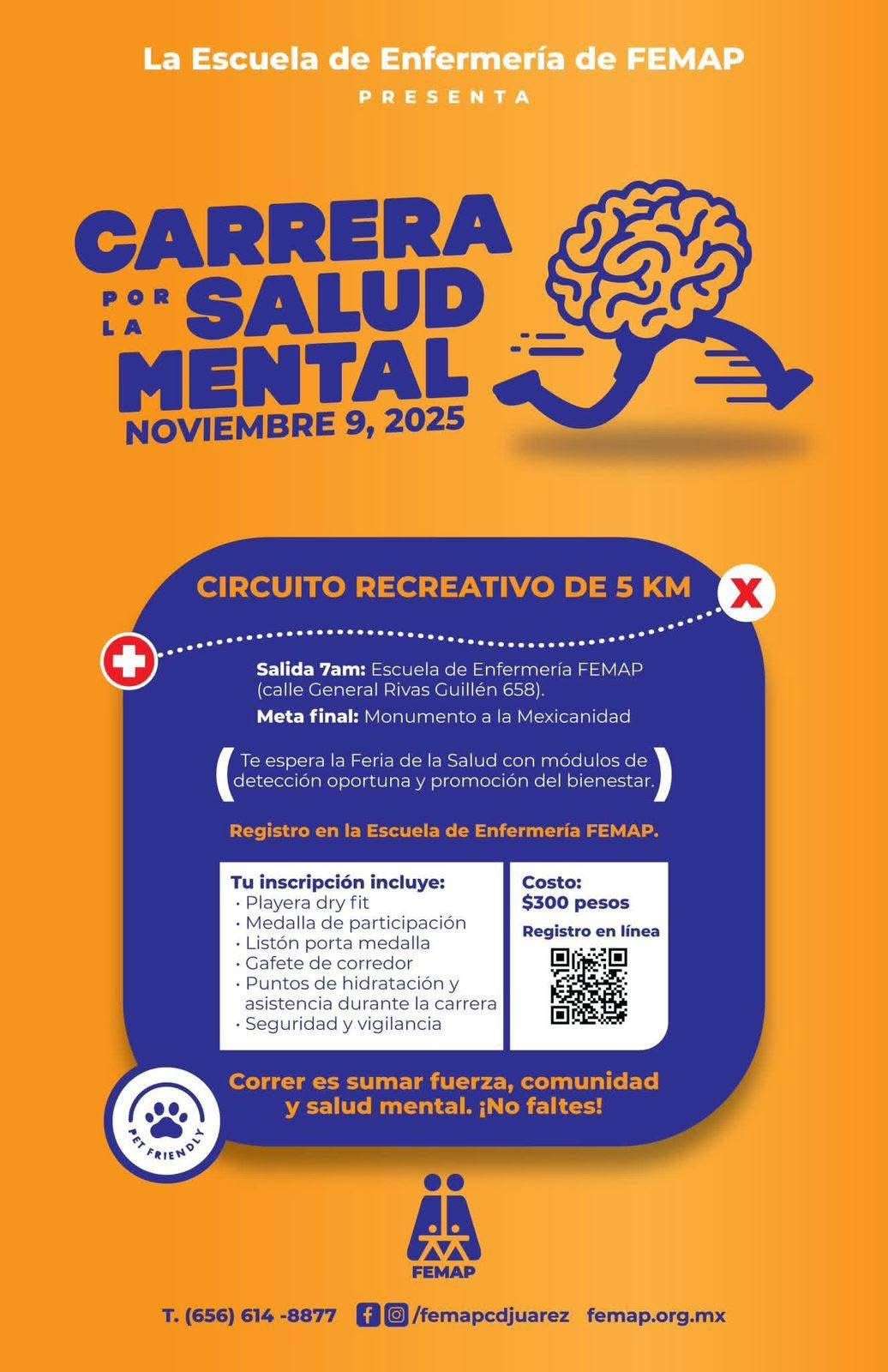 La carrera se llevará a cabo este domingo 9 de noviembre, a partir de las 7:00 de la mañana, con salida en la Escuela de Enfermería del FEMAP y meta en el Monumento a la Mexicanidad.