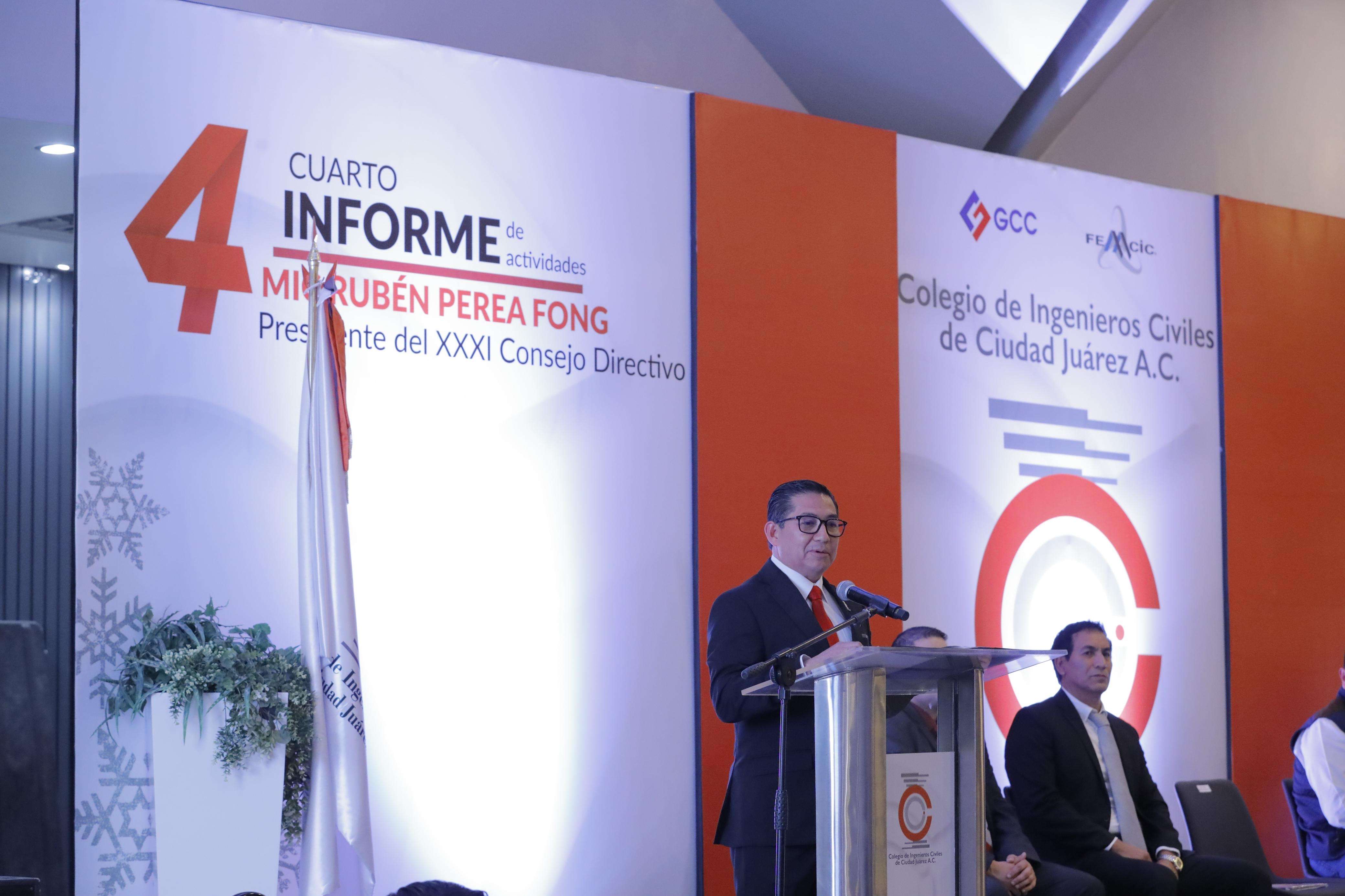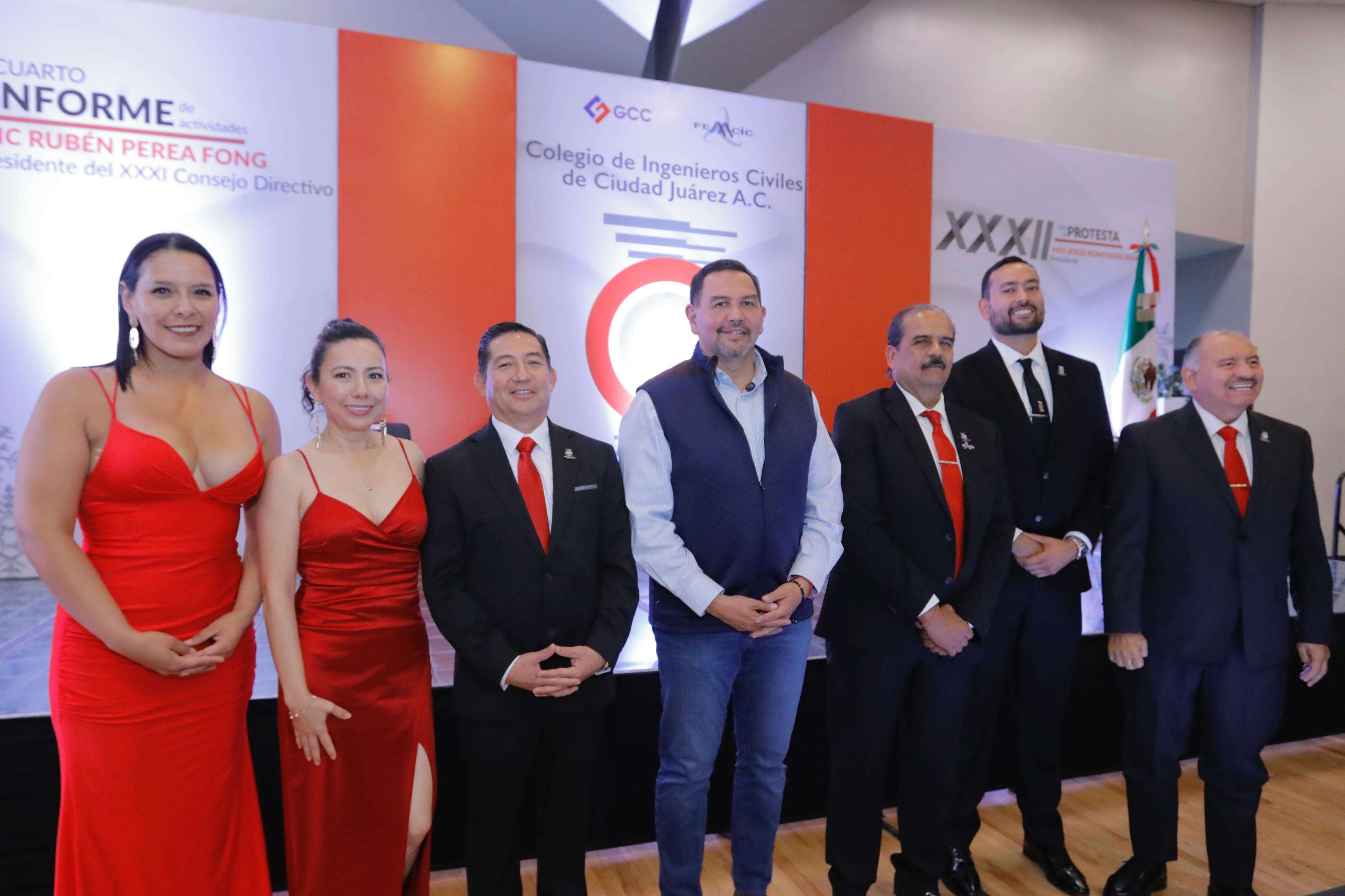 Ciudad Juárez.- Durante el informe de actividades y relevo del Consejo Directivo del Colegio de Ingenieros Civiles de Ciudad Juárez, el Presidente Municipal, Cruz Pérez Cuéllar, reconoció el trabajo realizado por Rubén Perea Fong al frente del XXXI Consejo, así como la importancia de la coordinación entre gobierno, sector profesional, la academia y sociedad civil para enfrentar los retos de la ciudad.