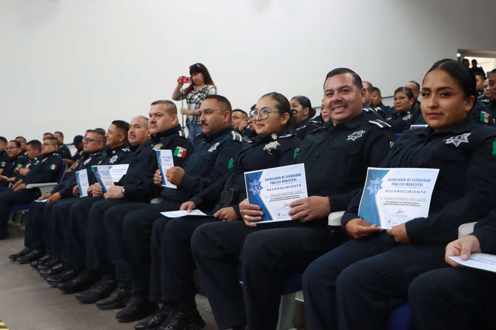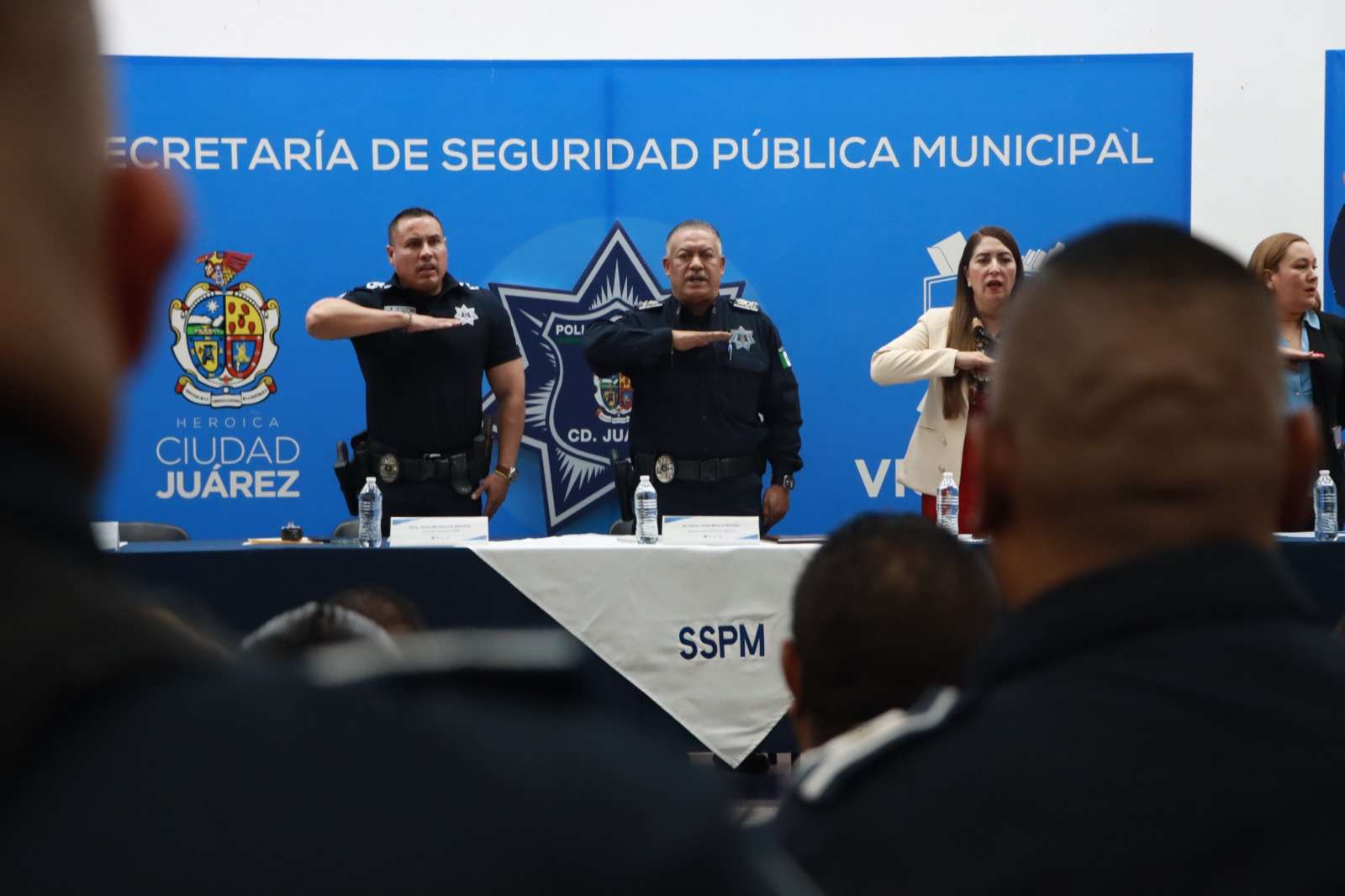 Ciudad Juárez.- La Secretaría de Seguridad Pública Municipal reconoció a 60 agentes como “Policía del Mes” de agosto, en un evento realizado en las instalaciones de la Academia Municipal de Policía, destacando sus acciones heroicas, detenciones relevantes y aportaciones en labores de prevención y vigilancia en la ciudad.