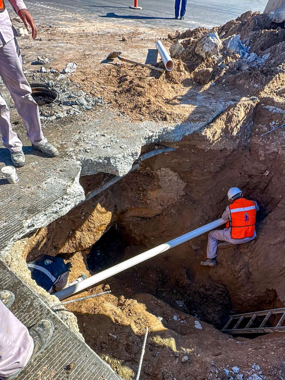 El desperfecto se originó debido a que una línea de conducción de cuatro pulgadas resultó afectada por los gases de un colector sanitario de 24 pulgadas que se encontraba en desuso y que ya había cumplido su vida útil. Así lo explicó la ingeniera Tanahili Gaytán, jefa de Agua Potable.