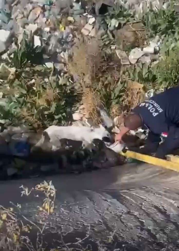 De manera inmediata, los oficiales acudieron al lugar señalado, arribando la unidad 131, quienes al llegar observaron a un perro que se encontraba entre la basura y el agua del canal, intentando salir por sus propios medios.