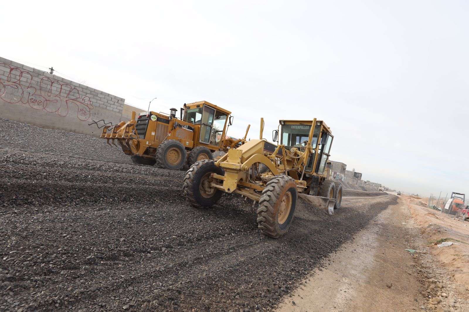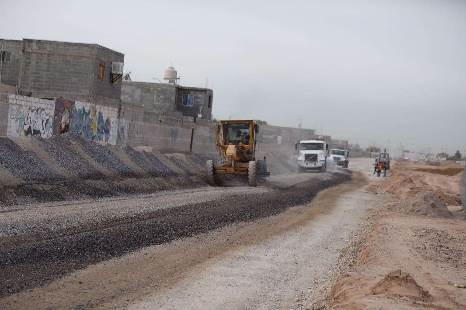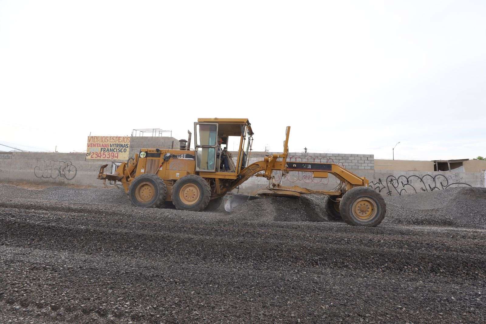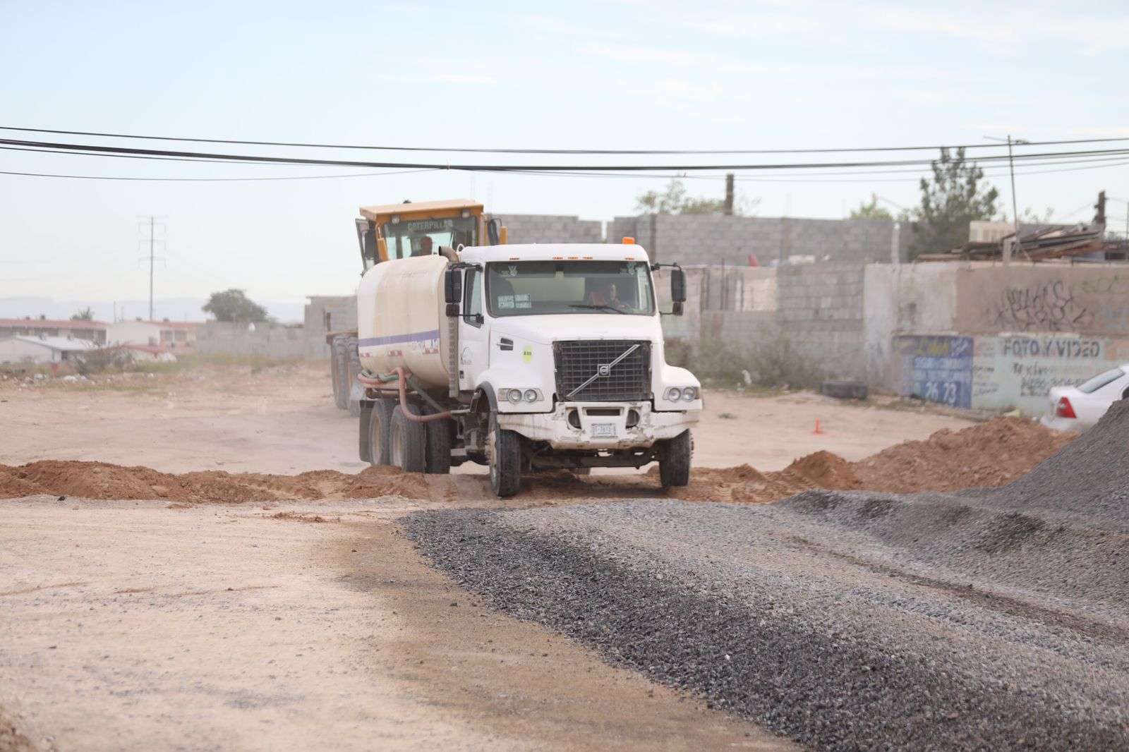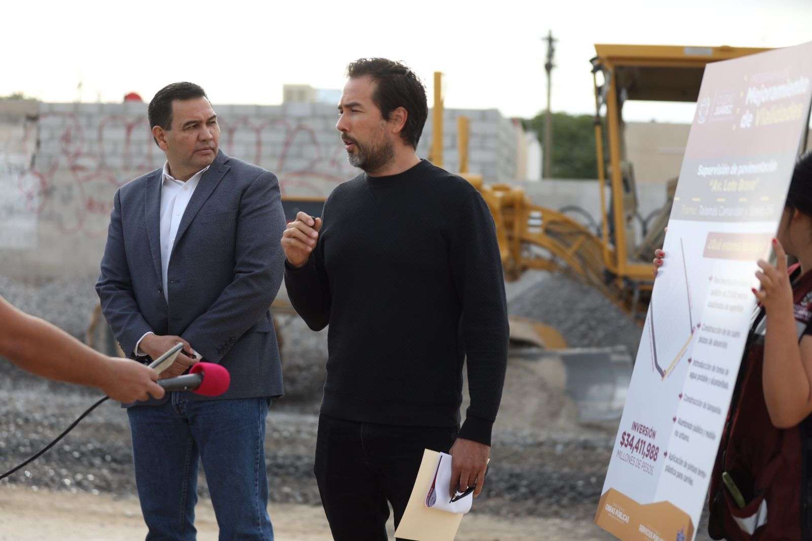 Ciudad Juárez.- Esta mañana el Presidente Municipal, Cruz Pérez Cuéllar, estuvo en las inmediaciones de la avenida Lote Bravo para supervisar los trabajos que realiza la Dirección General de Obras Públicas para la pavimentación de dicha arteria en el suroriente de la ciudad.