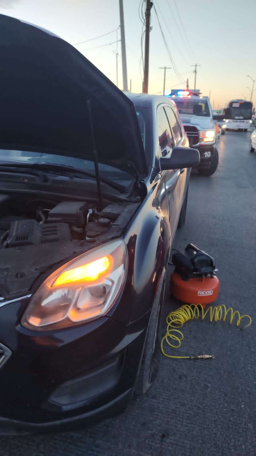 Durante los trayectos se encontró con parte de los apoyos que los operadores brindan diariamente, siendo uno de ellos en el bulevar Juan Pablo II y calle Arizona, punto donde encontraba la unidad 10, otorgando el servicio ciudadano, el cual fue por paso de corriente y desponchadura.