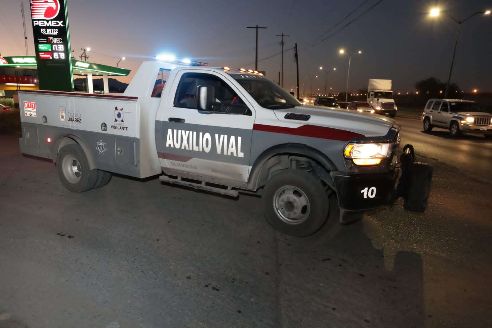 Ciudad Juárez.- El presidente Municipal, Cruz Pérez Cuellar, llevó a cabo un recorrido por las calles de la ciudad, donde de manera sorpresiva supervisó el trabajo, funcionamiento y atención que brindan las unidades de Auxilio Vial a los automovilistas.