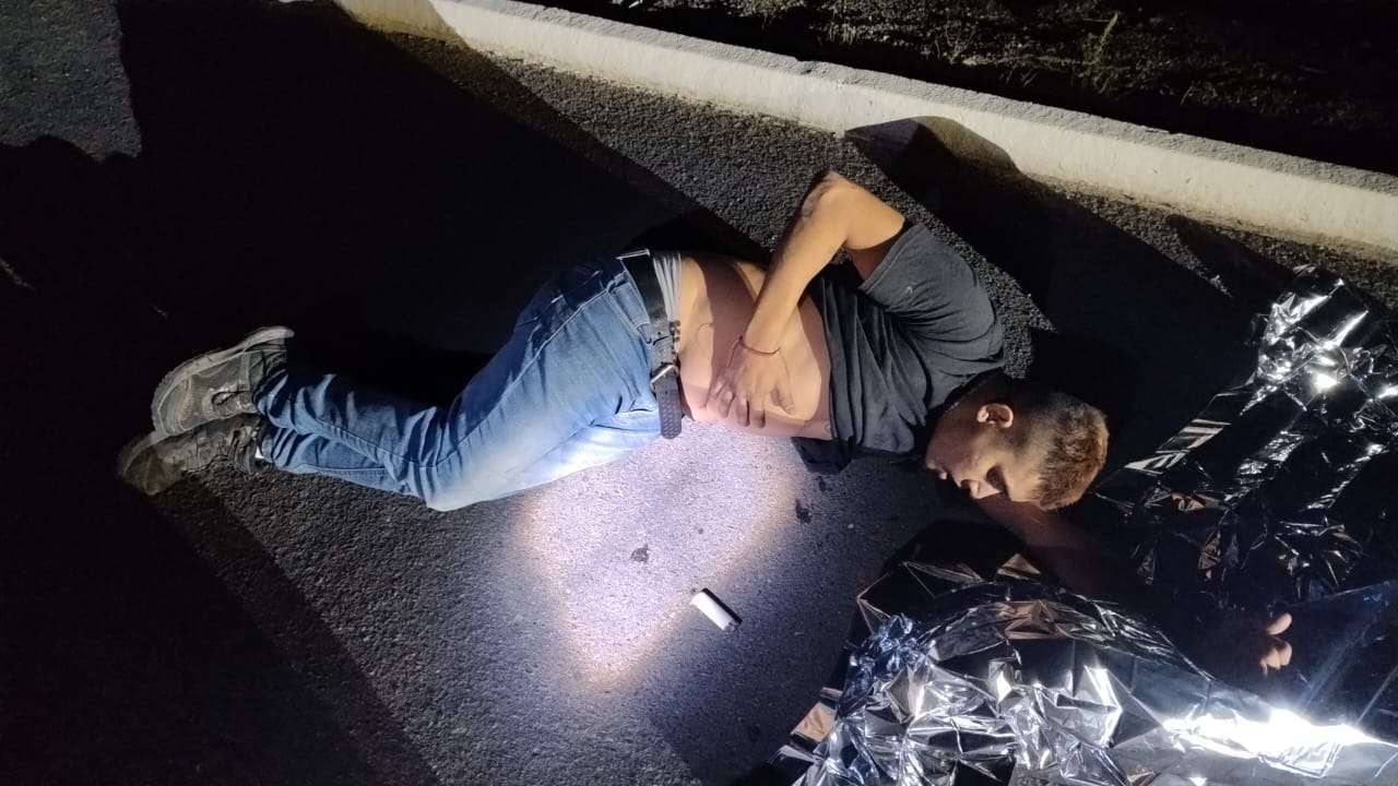 El herido estaba en la carpeta asfáltica vistiendo botas negras, pantalón de mezclilla y playera negro.