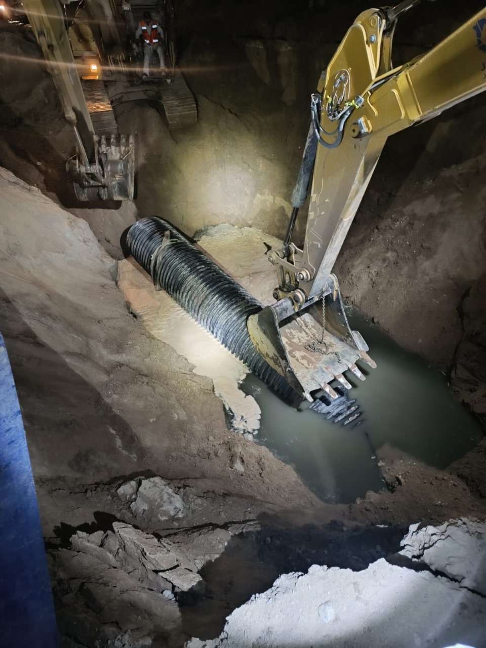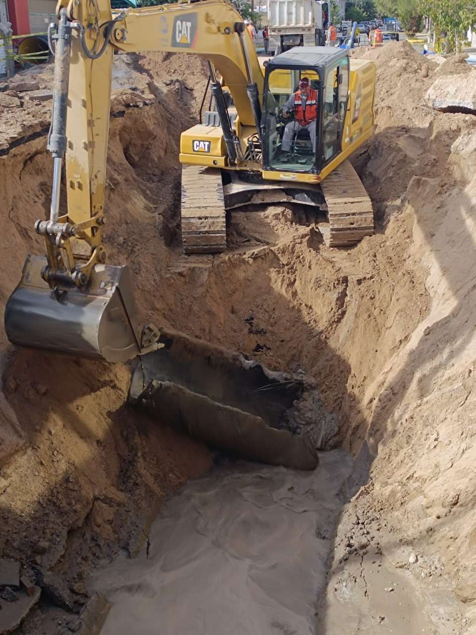 Hasta el jueves 28 de noviembre se habían instalado 62 metros de tubería de 42 pulgadas, trabajando a cuatro metros de profundidad. Se tiene programado concluir trabajos de instalación de tubería y compactación de tramo, hoy viernes, para proceder a realizar los trabajos de bacheo.