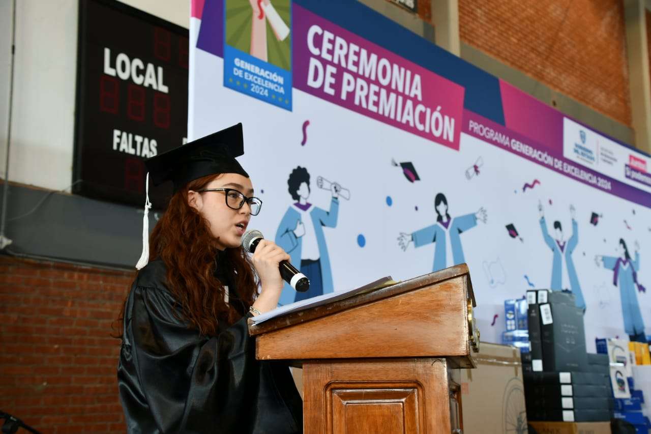 “Ser un estudiante excelente, además de obtener las mejores calificaciones, implica ser curioso, buscar constantemente el conocimiento y siempre estar dispuesto a enfrentar los desafíos, pues cada obstáculo es una oportunidad para crecer y ver que el verdadero aprendizaje va más allá de los libros”, expresó.