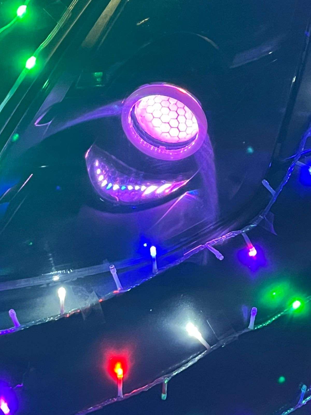 El proyecto no se limita únicamente a lo estético. Como parte de su formación profesional, Gustavo desarrolló la programación electrónica del sistema de iluminación, permitiendo que las luces cambien de tonalidad en cuatro diseños distintos, todos controlados directamente desde su teléfono celular.