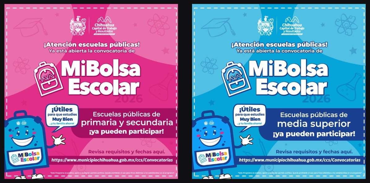 Chihuahua – El Gobierno Municipal de Chihuahua, a través de la Dirección de Desarrollo Humano y Educación y la Subdirección de Educación, recuerda que esta es la última semana para registrarse en el programa “Mi Bolsa Escolar 2026”, las convocatorias están dirigidas a escuelas del municipio con el objetivo de apoyar la economía de las familias mediante la entrega de apoyos escolares.
