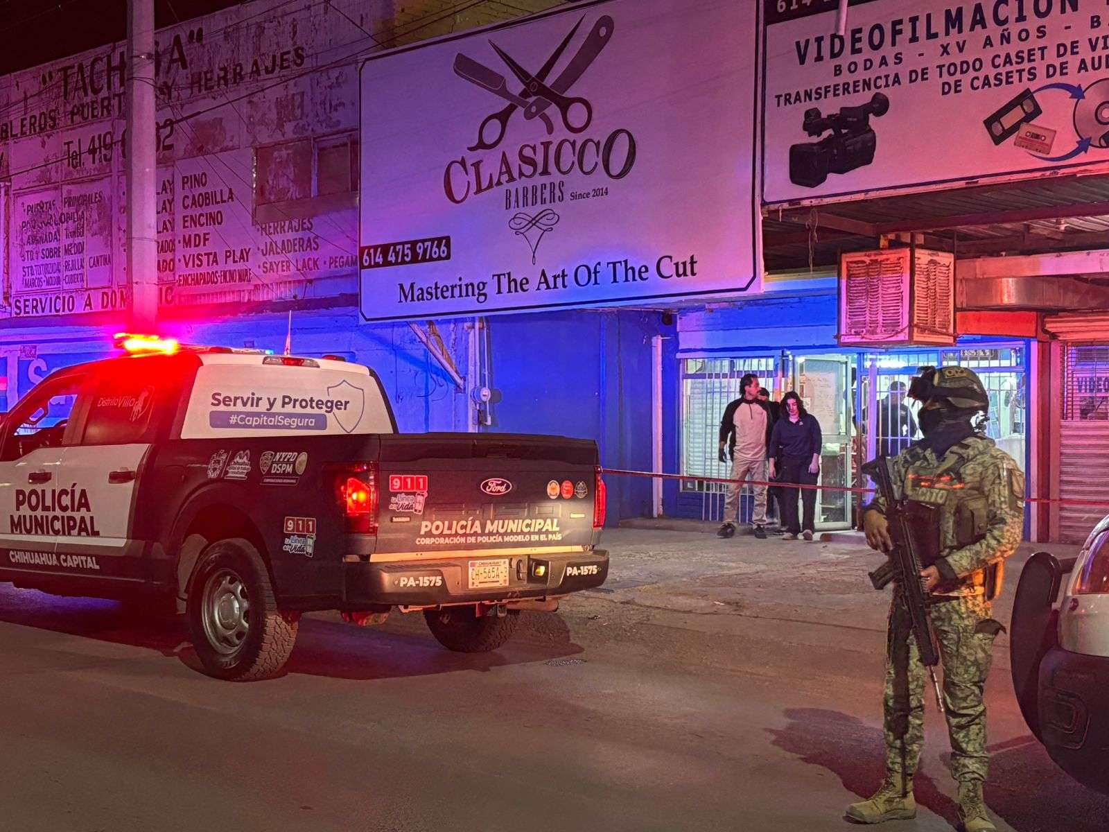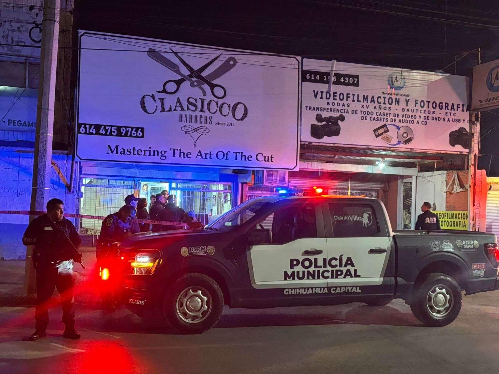 Chihuahua, Chih.– Dos personas dedicadas al oficio de la barbería fueron atacadas a balazos con armas de alto calibre al interior del establecimiento Clásico Barbers. Como resultado de la agresión, una perdió la vida en el lugar, mientras que la otra fue trasladada de emergencia a un hospital por paramédicos de la Cruz Roja.