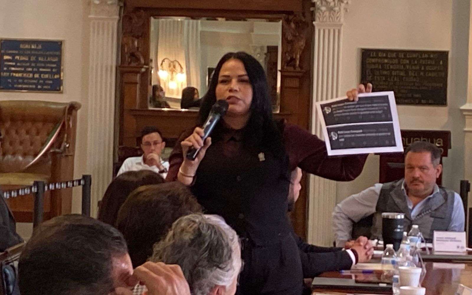 Chihuahua.– Durante la sesión de Cabildo, la regidora del PAN, Isela Martínez, recordó el caso del exsubdirector administrativo de la Dirección de Seguridad Pública Municipal (DSPM), Luis Terrazas, quien fue destituido tras realizar comentarios en contra de la senadora Andrea Chávez.