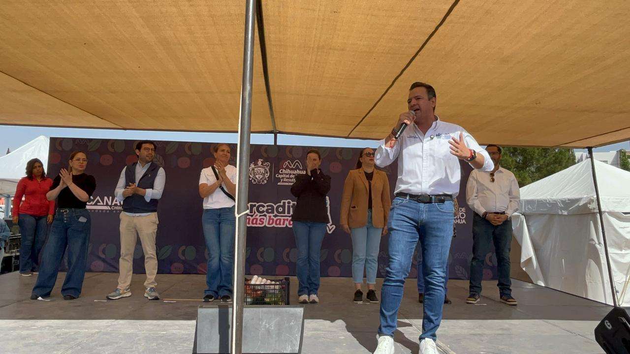 Chihuahua.- Con el objetivo de fortalecer la economía de los hogares chihuahuenses y brindar un canal de comercialización directo para los agricultores del estado, el alcalde de Chihuahua, Marco Antonio Bonilla Mendoza, encabezó la primera edición del programa “Mercadito más Barato”.